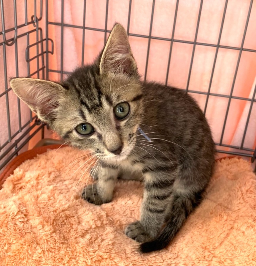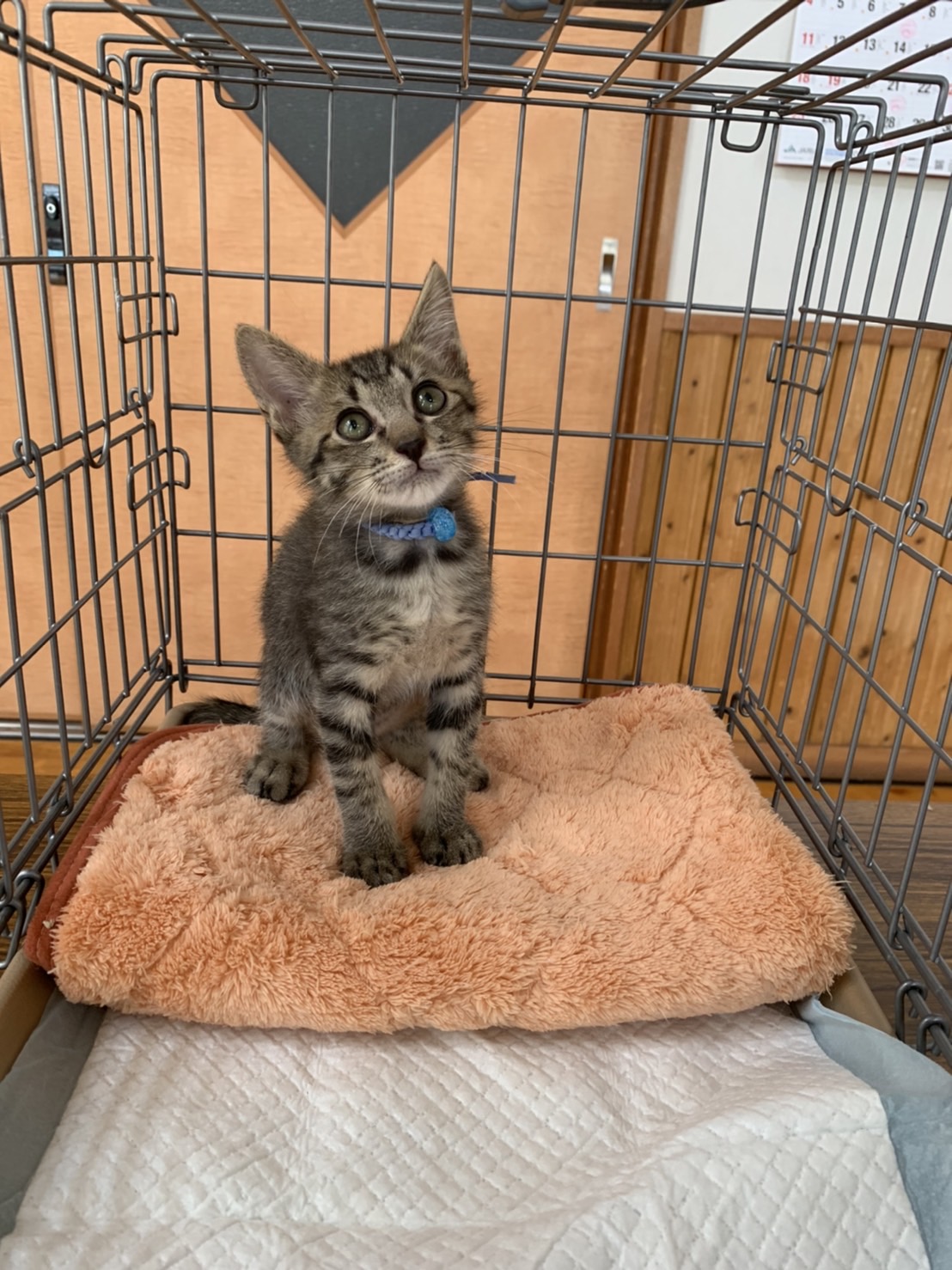 そのままでは、命にかかわるため、岡山手のひら子猫でレスキューし、現在は預かりボランティアさんのおうちで