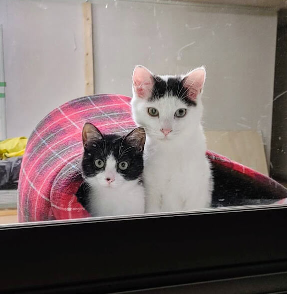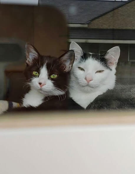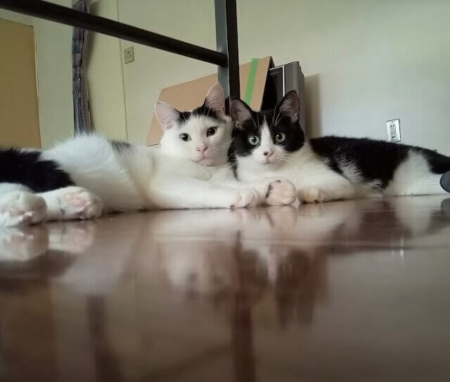 兄妹にゃん(=^・^=)白黒のしまさん♂八割れのはーちゃん♀
