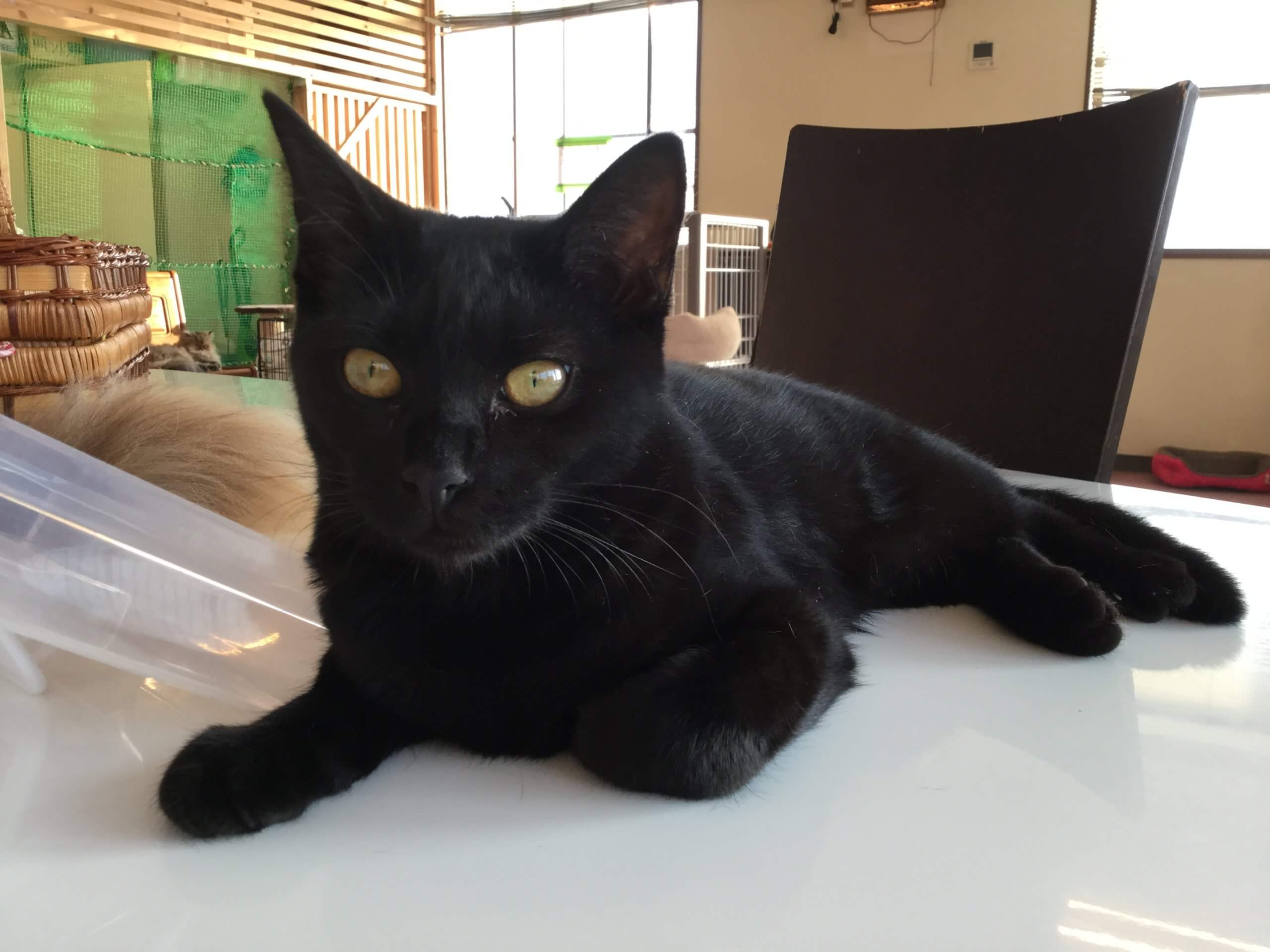 一見真っ黒のように見えますがママ猫譲りの縞模様が入った黒猫ちゃんです。