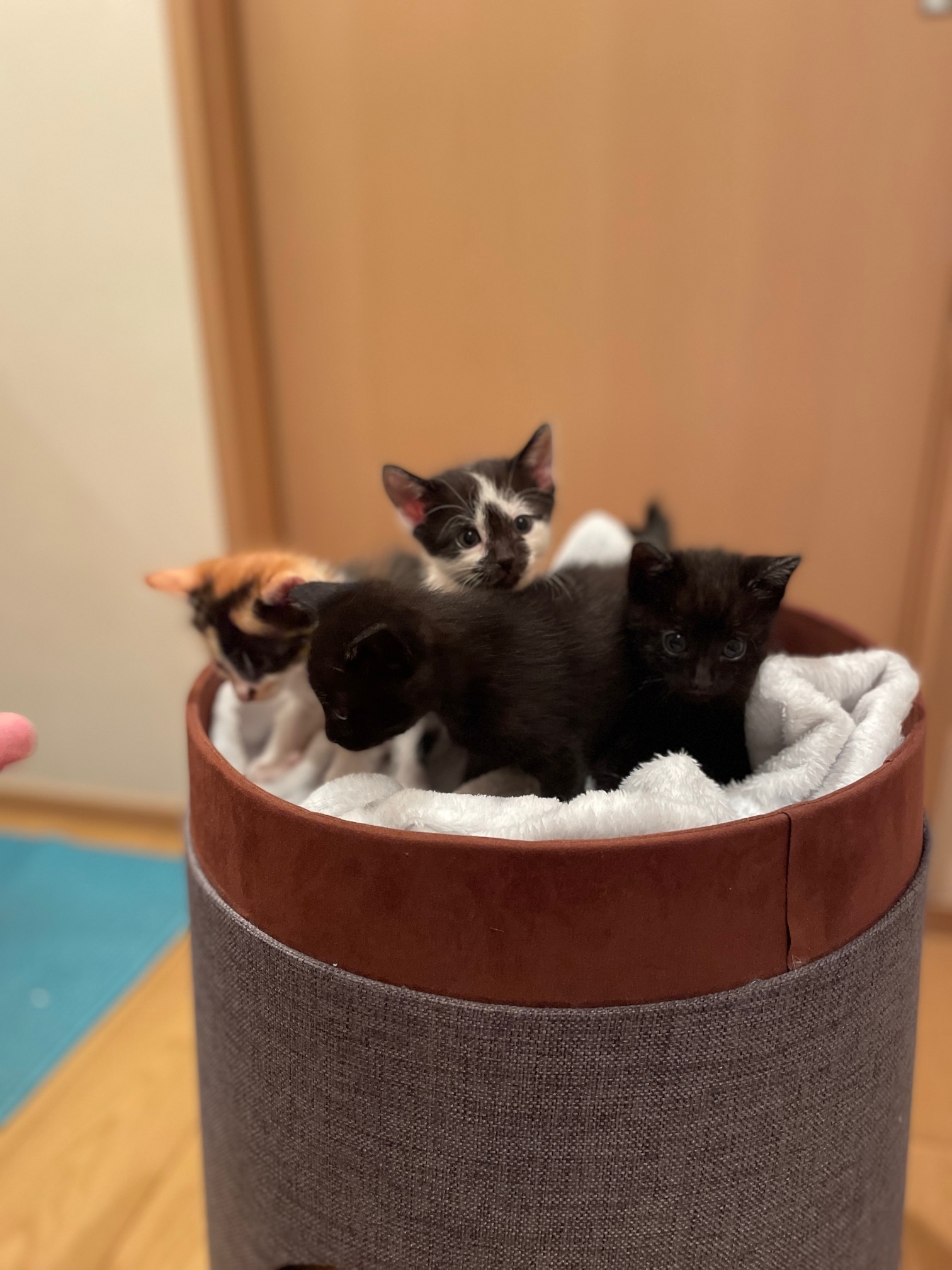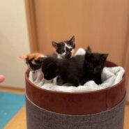 野良猫が庭で子猫を産んだとのことで、母猫と子猫4匹保護しました