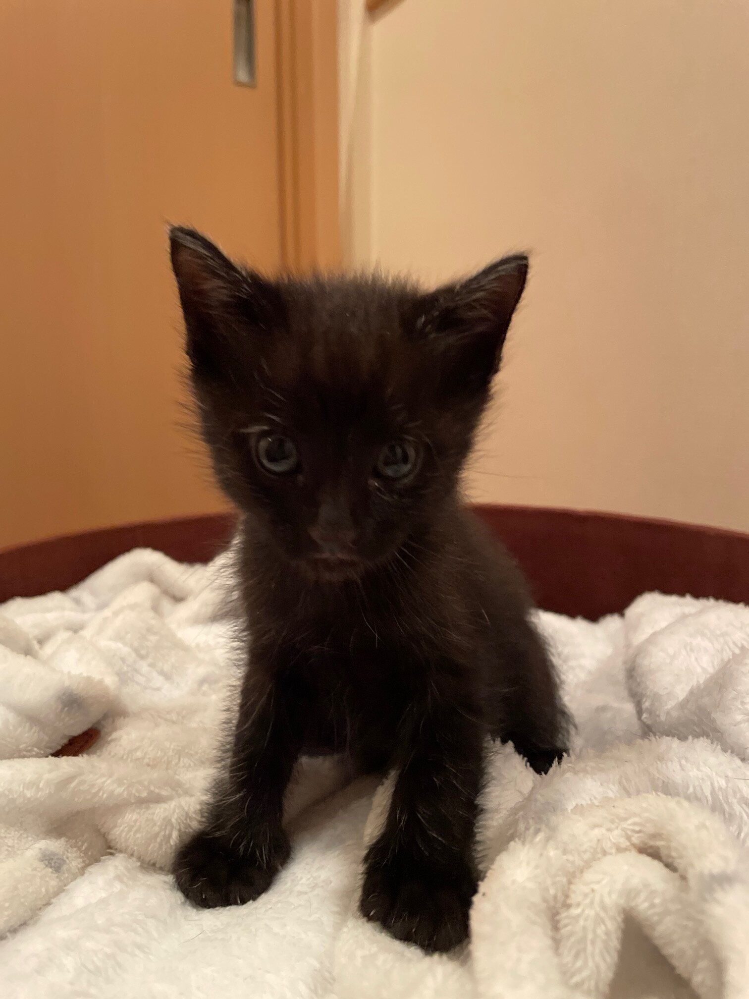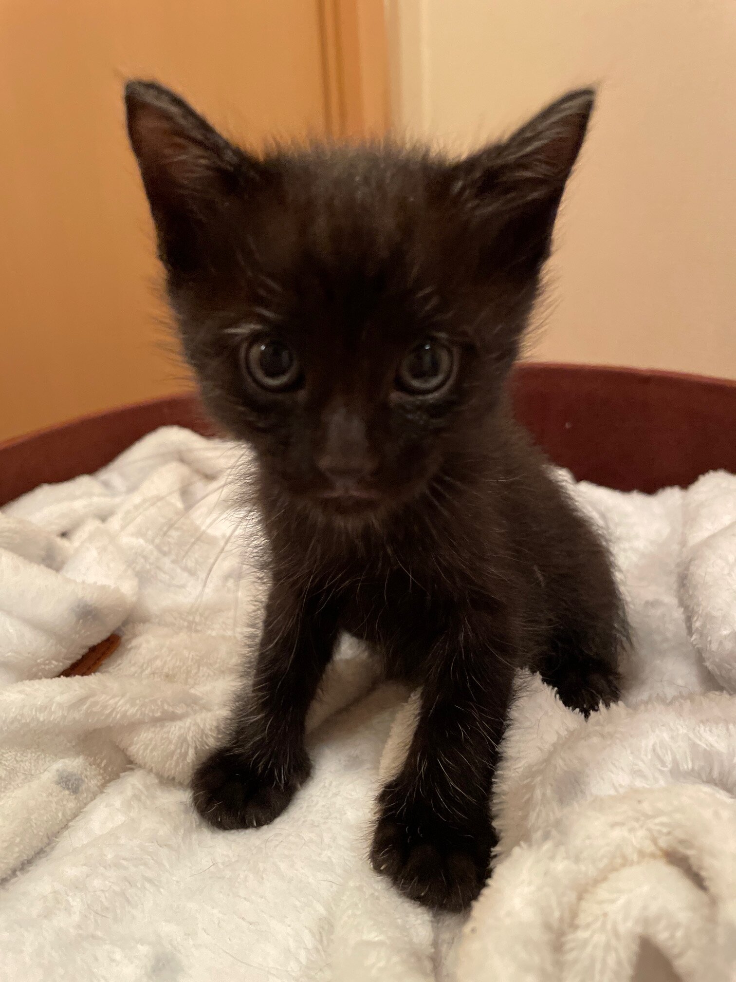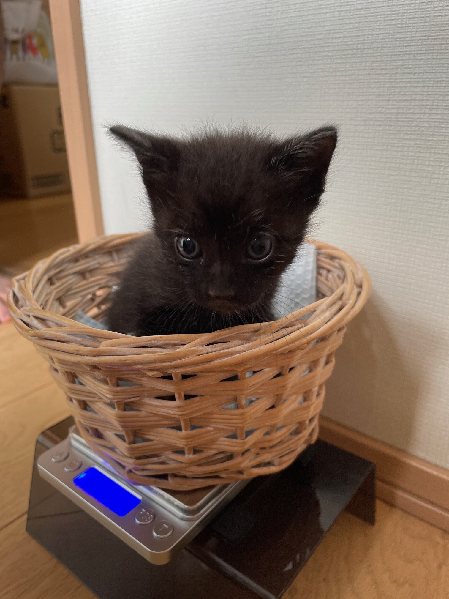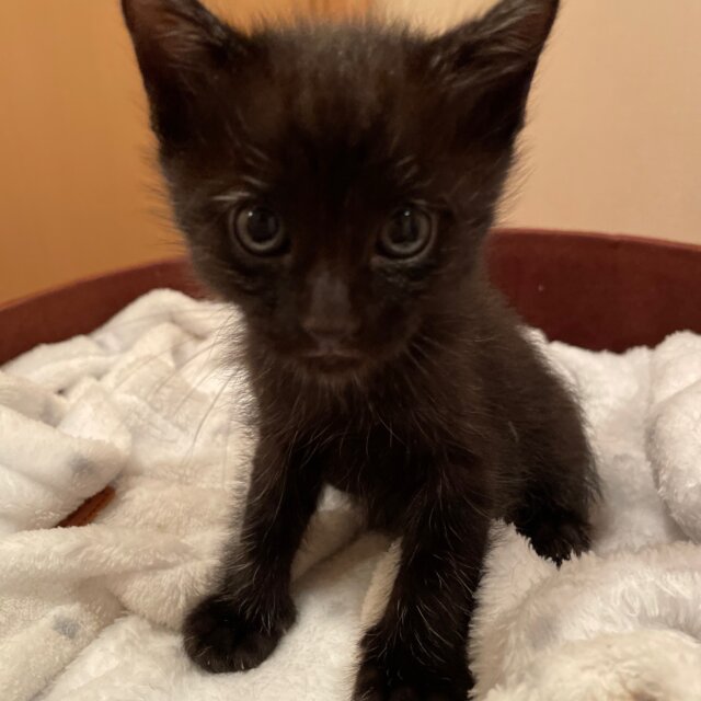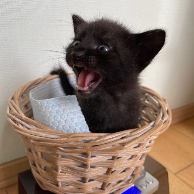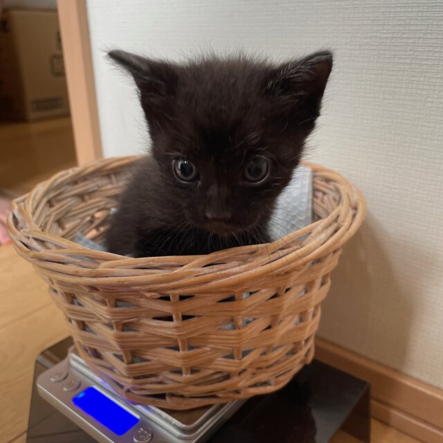 9/1生まれの生後約1.5ヶ月、体重は約650g、クロの男の子で尻尾は真っすぐです