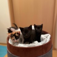 野良猫が庭で子猫を産んだとのことで、母猫と子猫4匹保護しました