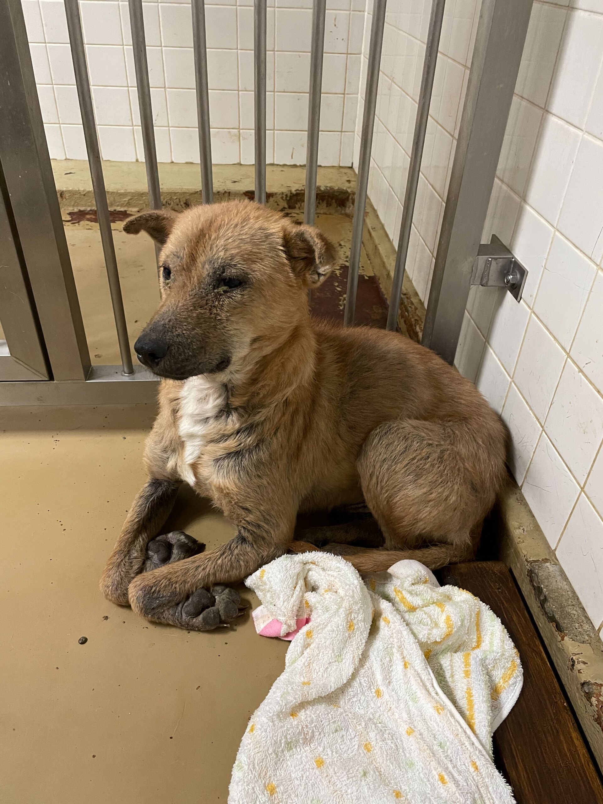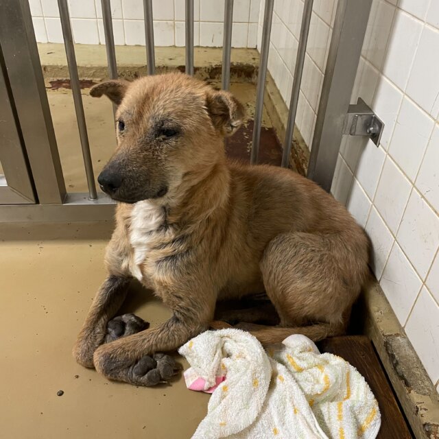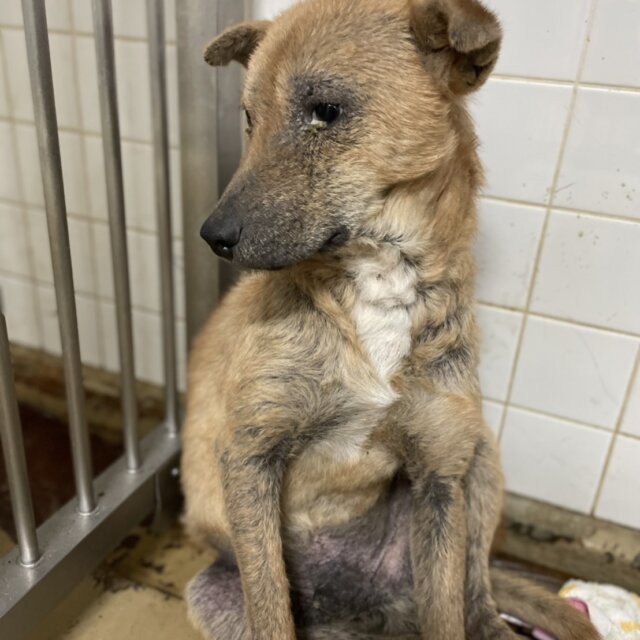 この子は山口県の保護団体にいます。皮膚状態も良くないです。助けて下さい