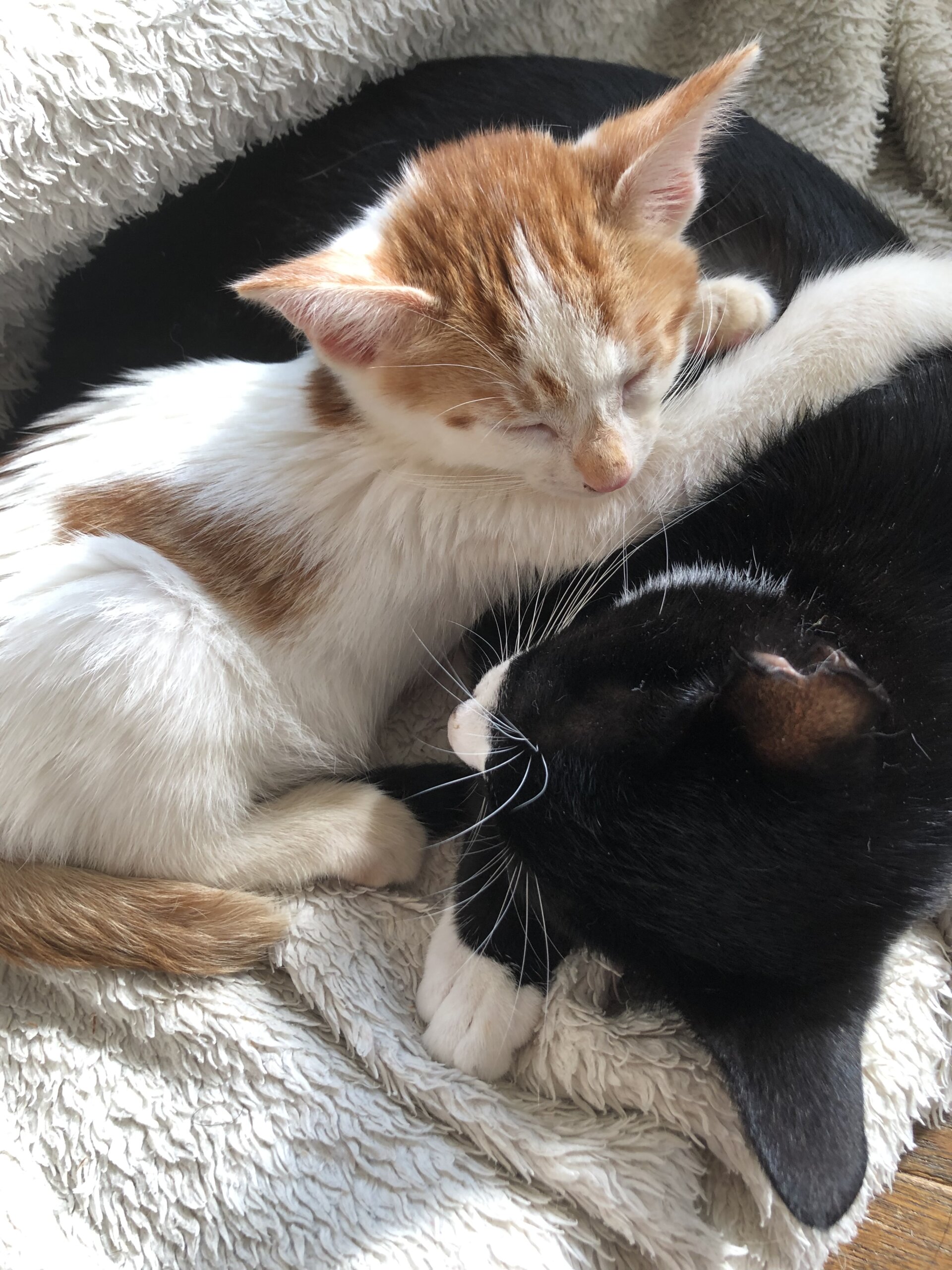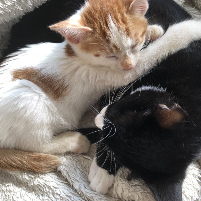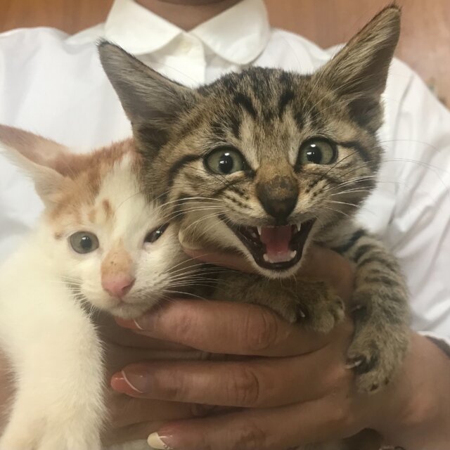 兄弟猫と現在預かりをさせていただいております。もし、余裕がありましたら一緒にお迎えして下さると嬉しいです。同じ月齢の兄弟が一緒だと色々な面で育てやすいと思います。(当方も経験済みです)