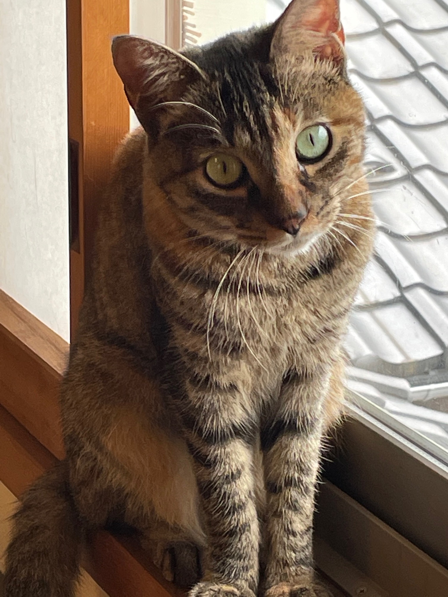 大きな瞳で見つめられると、ついおやつを差し出してしまう仮名【おめめちゃん】です。