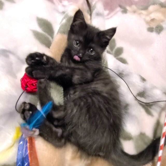 生後約3週間から人と一緒に暮らしているため、人に対してとても甘えん坊な子猫です。