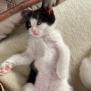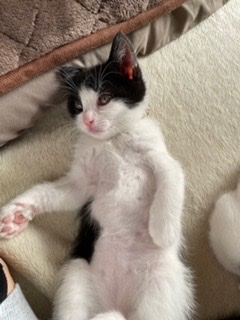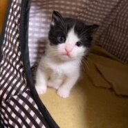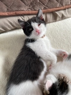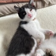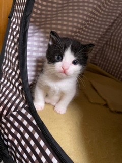 とても可愛い推定1.8ヶ月くらいの黒白子猫です。