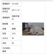| 年齢/月齢 | 成犬 推定2歳前後 |