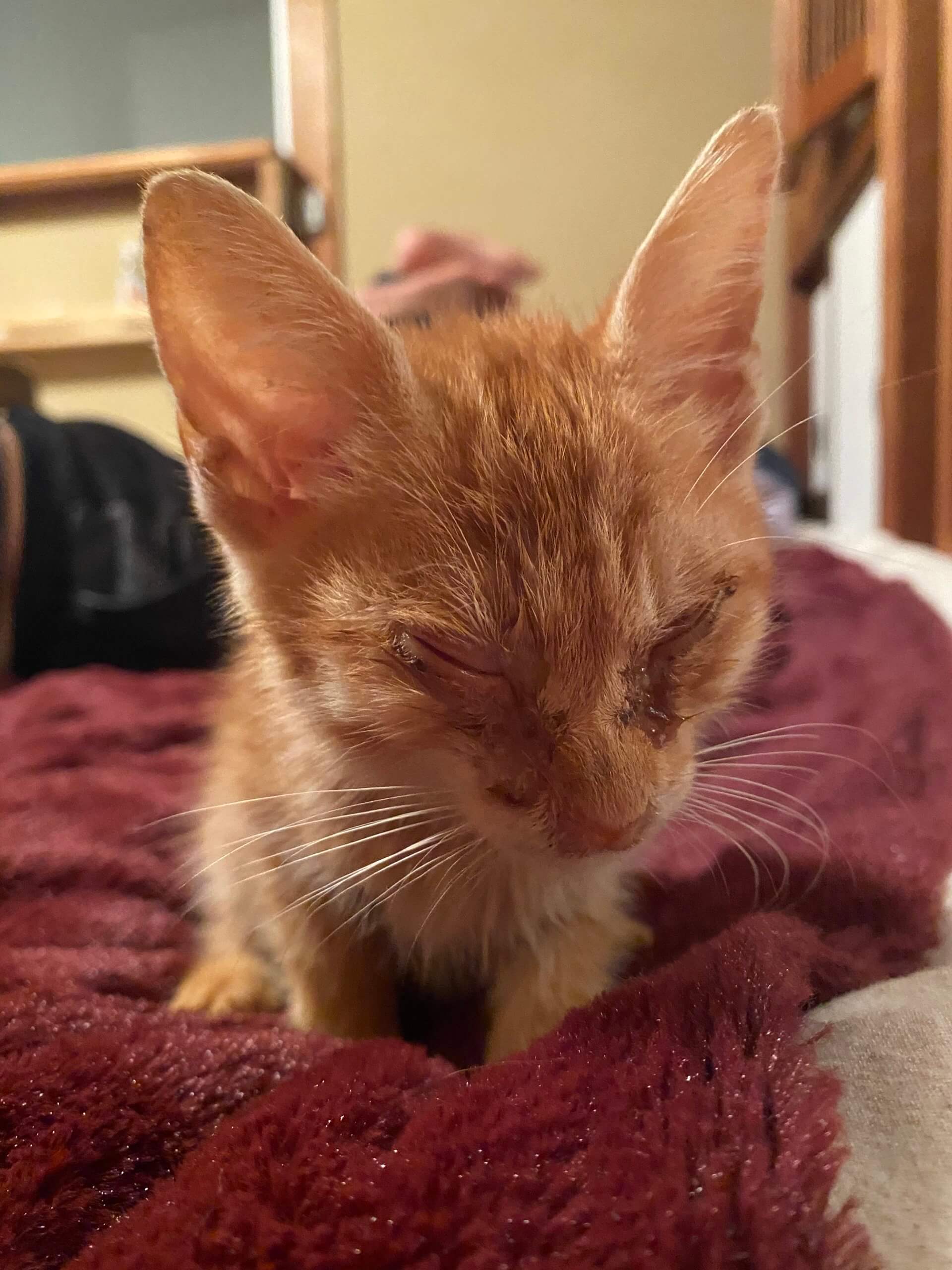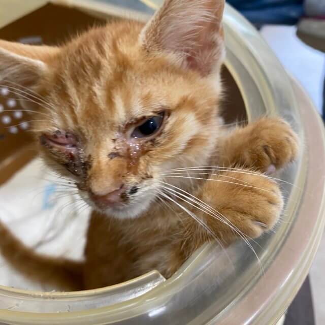 今日動物病院で健康診断をしましたところ、猫風邪が悪化して右目が化膿して目が塞がって見えない状態です。