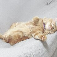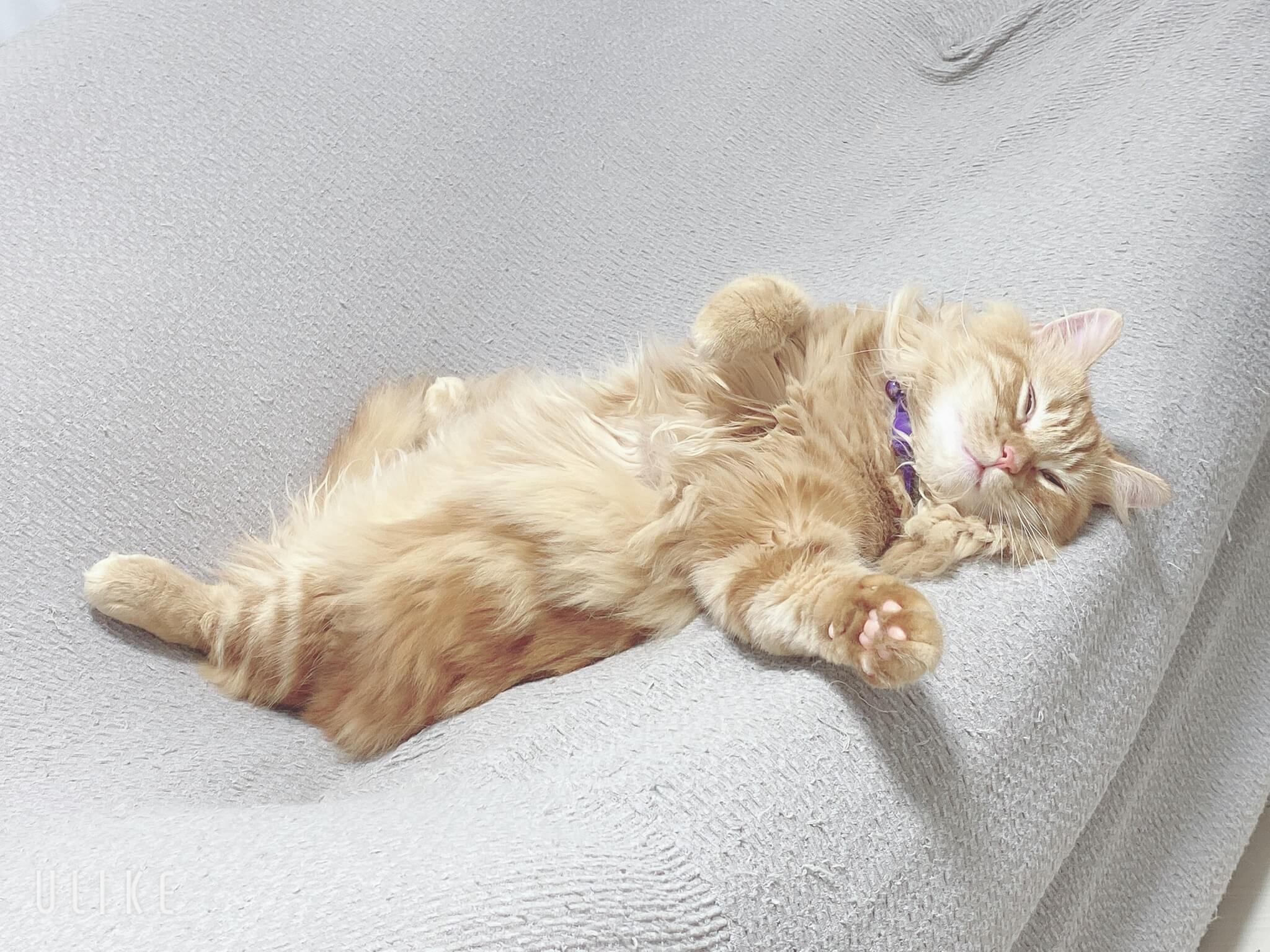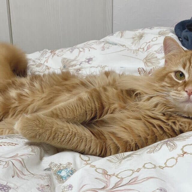 配達員の方にはビックリして隠れていますが、慣れるととても甘えん坊で頭の近くや足元で眠っています。