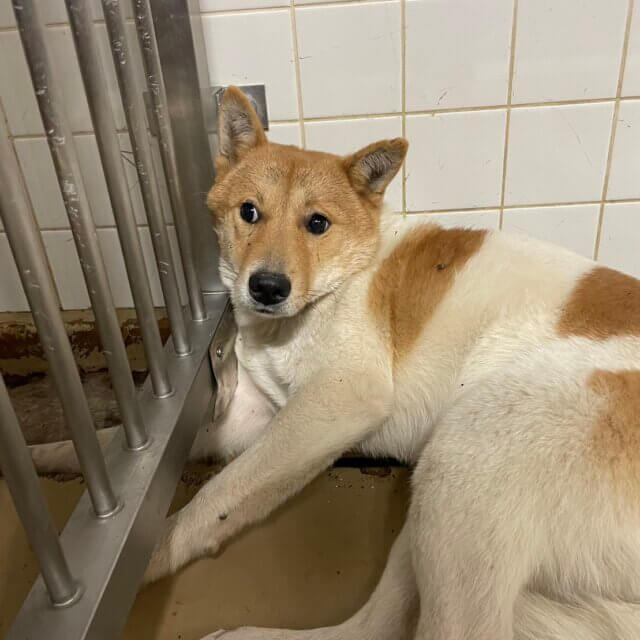 この子は山口県のセンターに捕獲されましたが期限を迎えても挙手がないために引き出し、保護団体に預かっていただいてます
