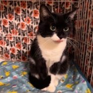 お目目がくりくりのとても可愛い黒白女の子です。