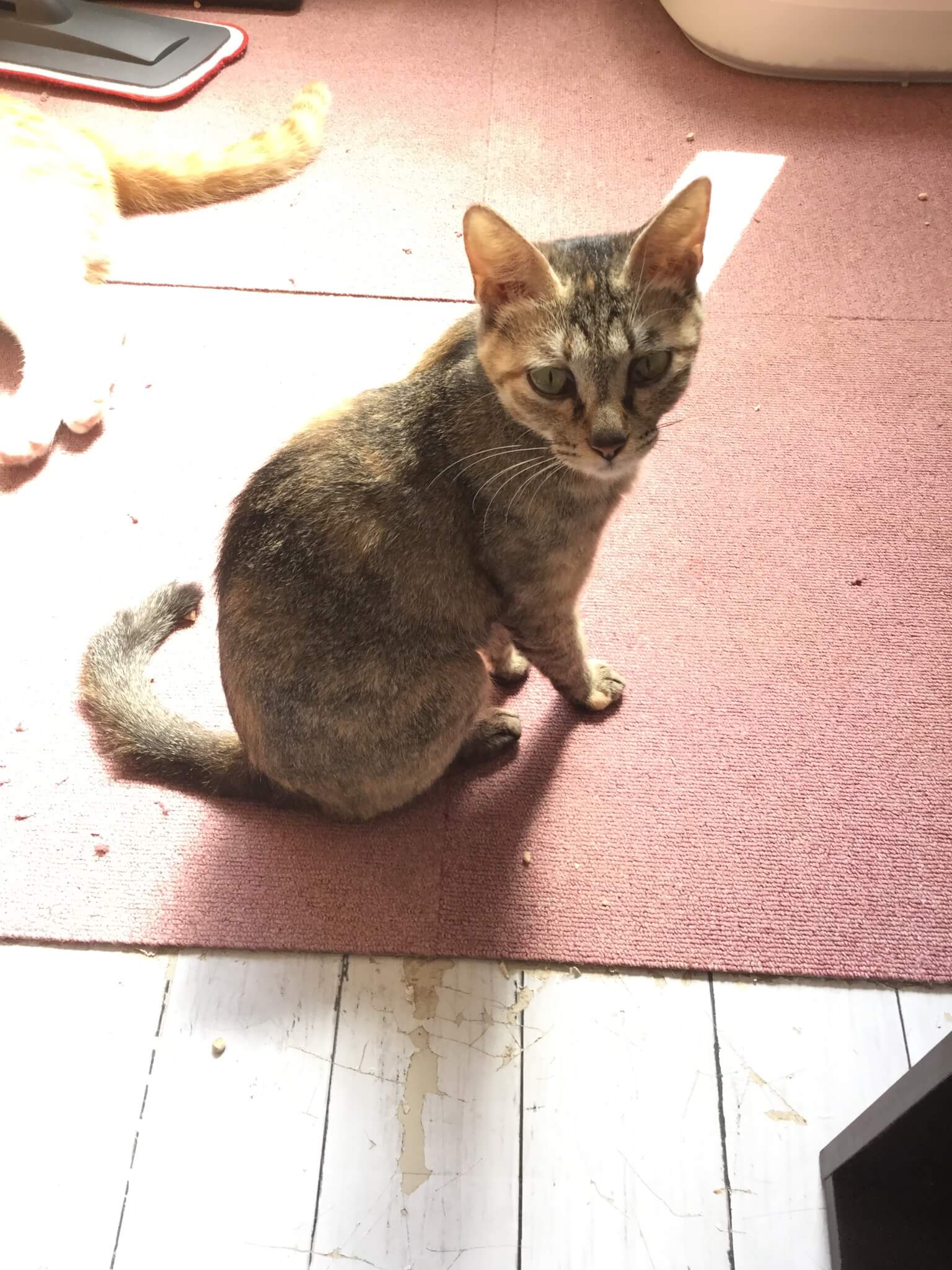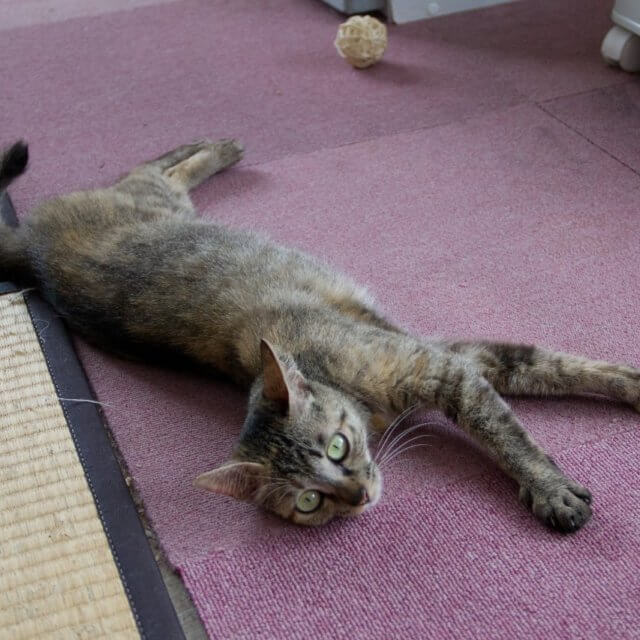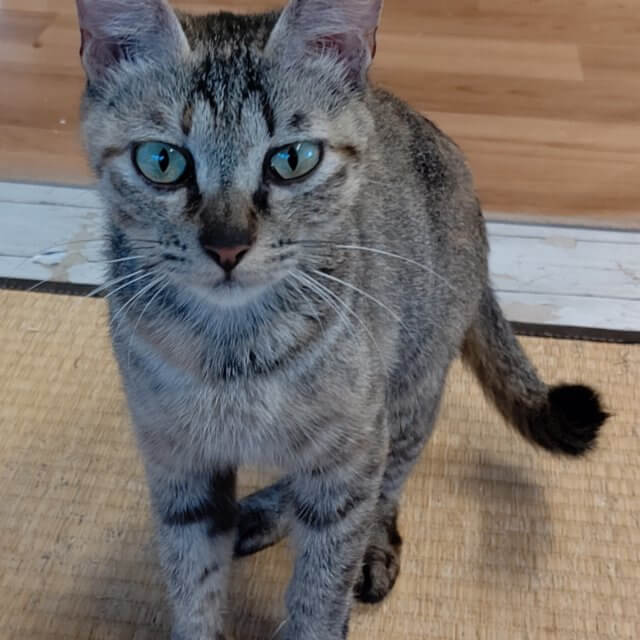 小柄なキジサビの飴ちゃん、からだは小さいけどたくさん食べます!小さなからだで2020年5月半ばに4匹産み母猫になりました。子供達は全員低体重でしたが4匹立派に育ててくれました!自分の子じゃない子猫まで面倒を見てくれるとても面倒見のいい母猫さんです。触ることはできますが抱っこはあまり好きじゃないようです。