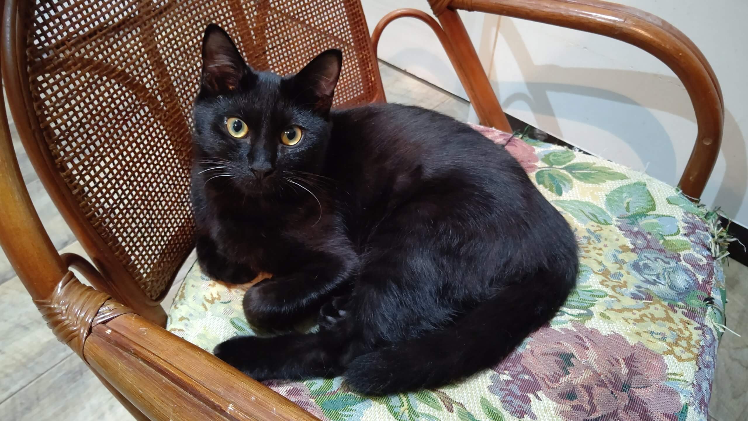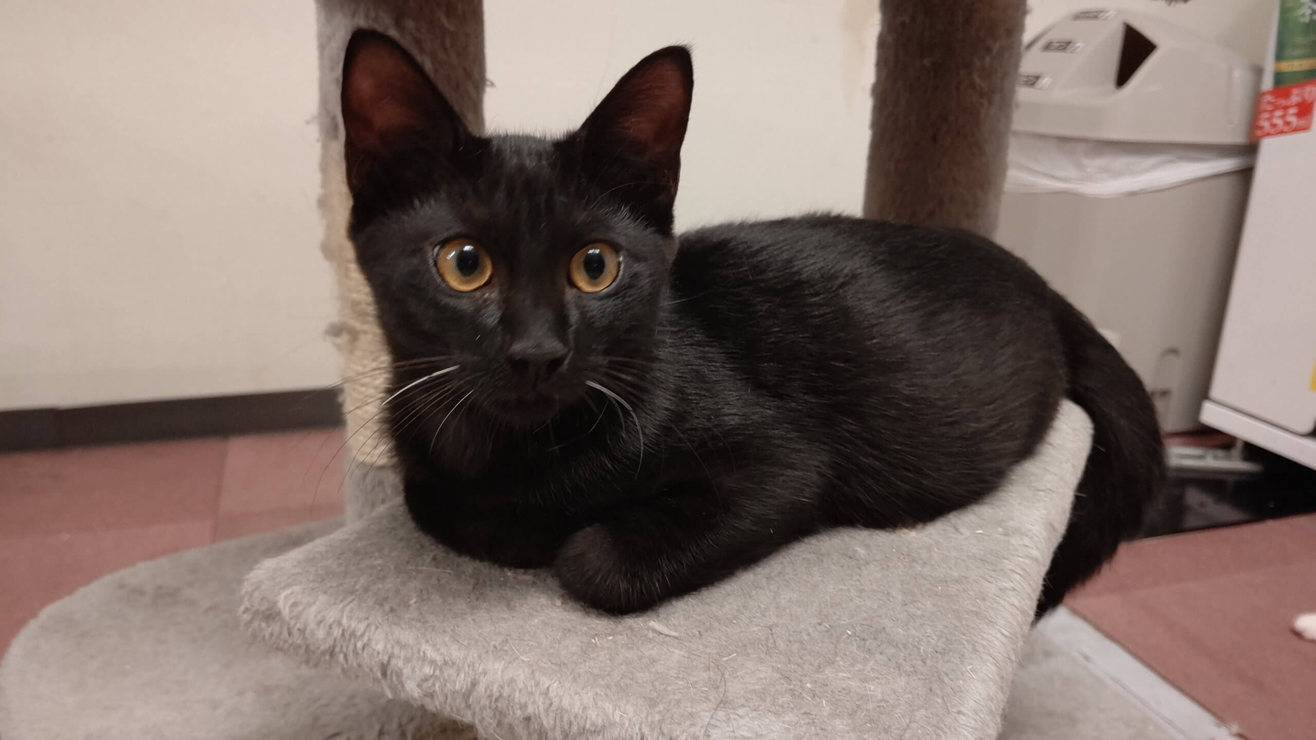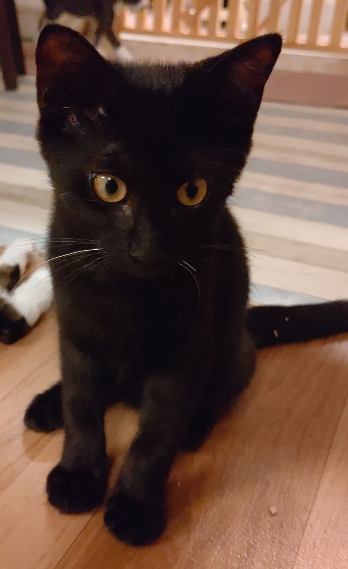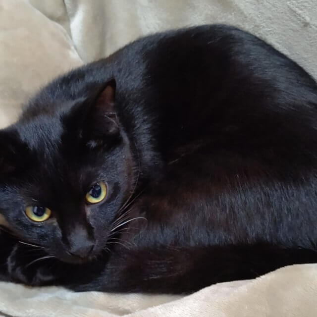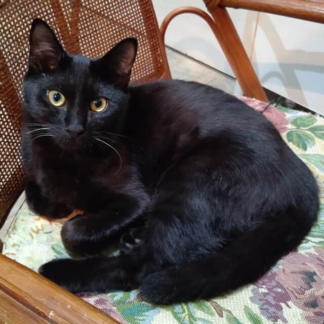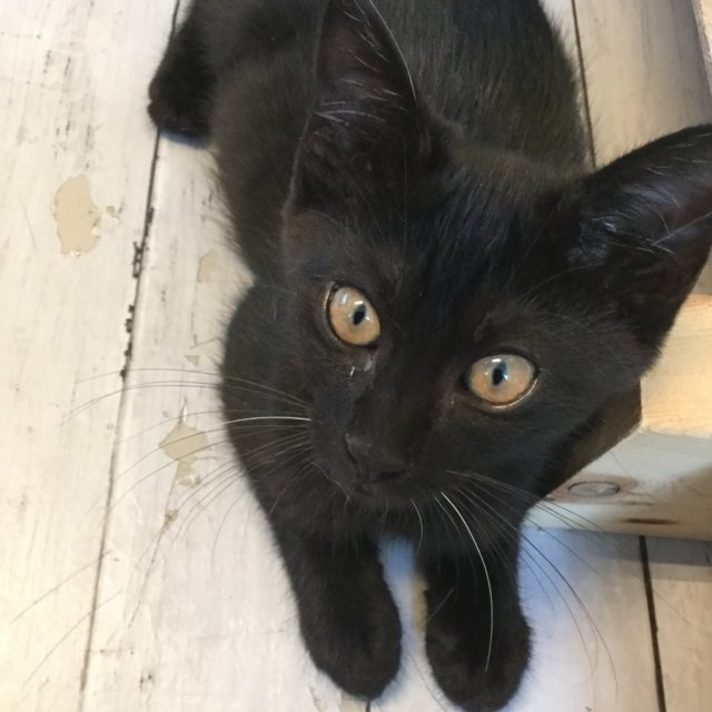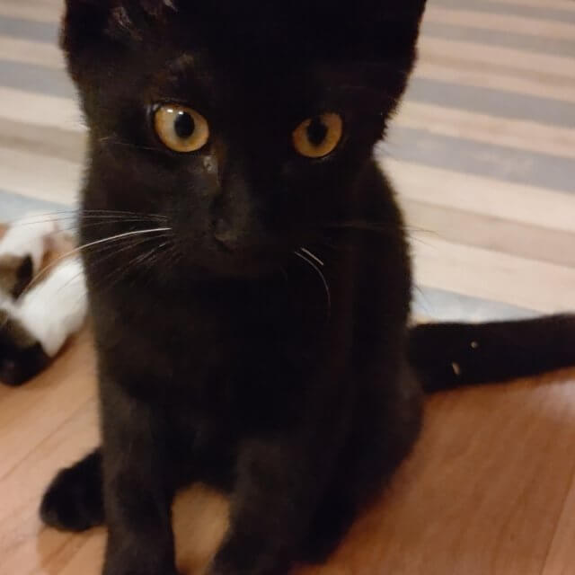黒猫のくろ♂8ヶ月です。おひげに白いひげが混じってるのが特徴!食べるの大好き遊ぶの大好き♫子猫らしくわんぱくな子です!