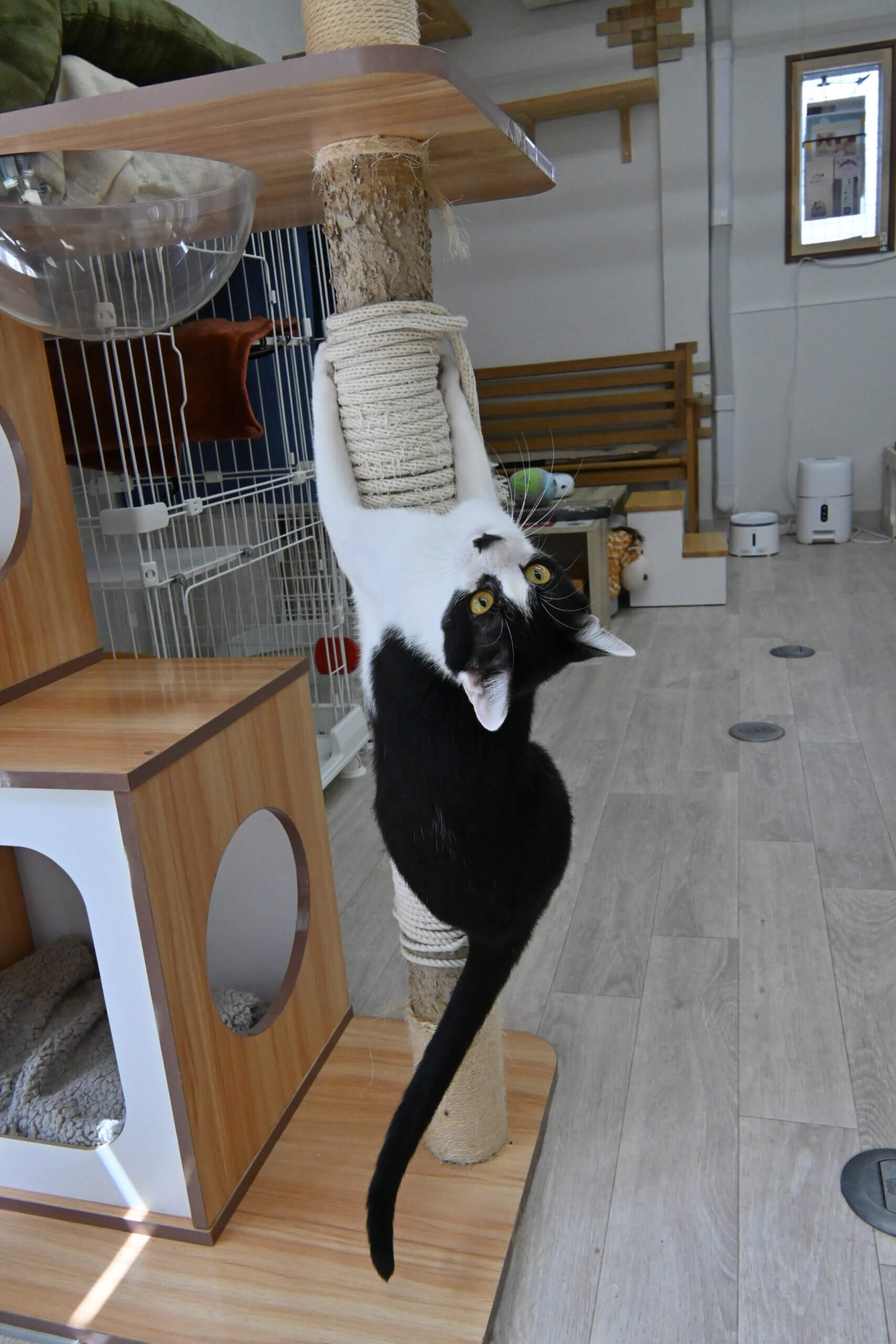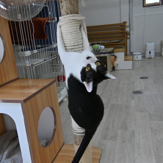 ねこが大好き、おもちゃも大好き。好奇心旺盛で元気に遊んでくれます。