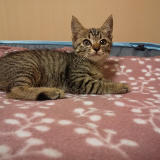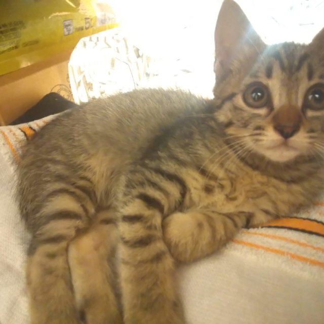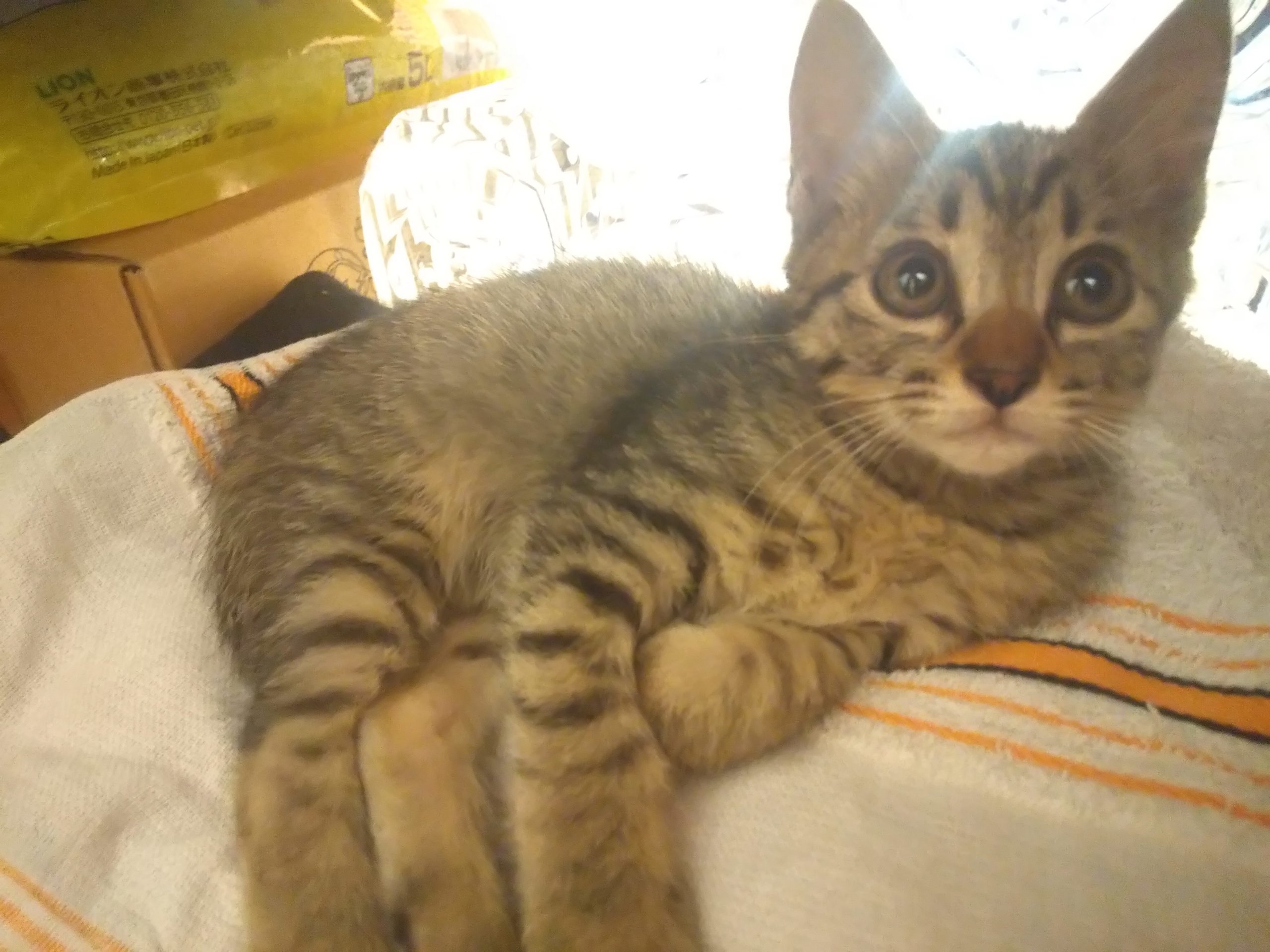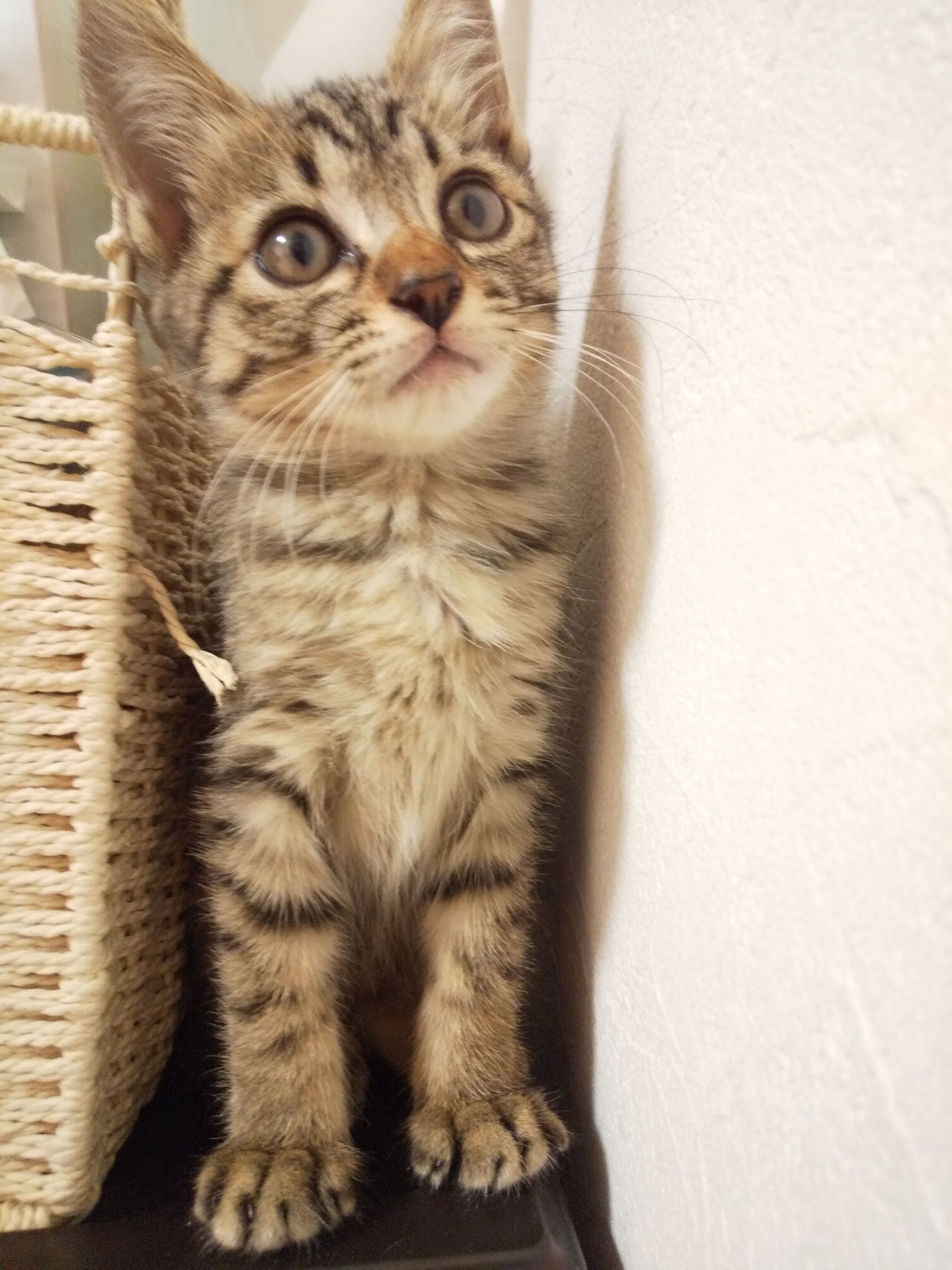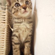 かわいいですキジトラ柄の子。ちょっとベンガル風。やんちゃで甘えん坊。元気いっぱい遊んでいます。