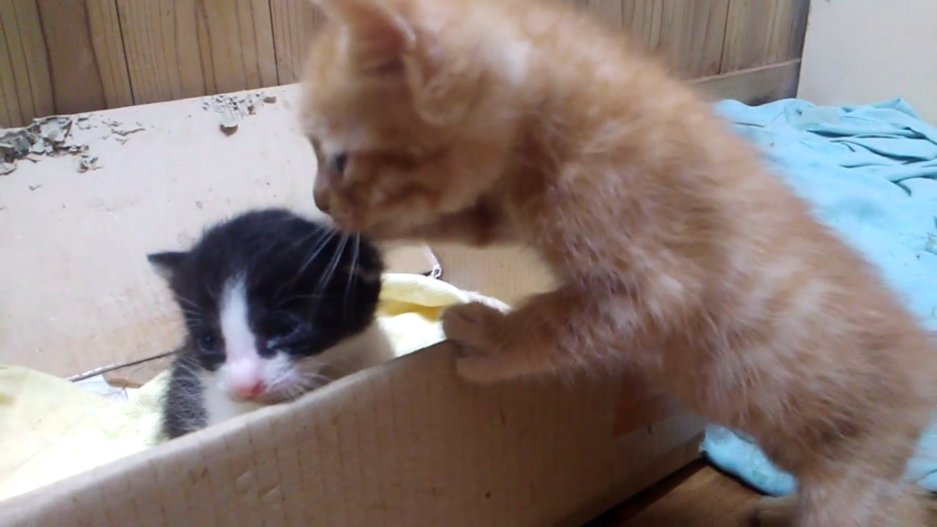 母猫よりずっと大きくなりましたが、今も母猫に甘えます。