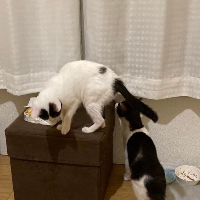 ちゅーるとオモチャで遊ぶのが大好きです。