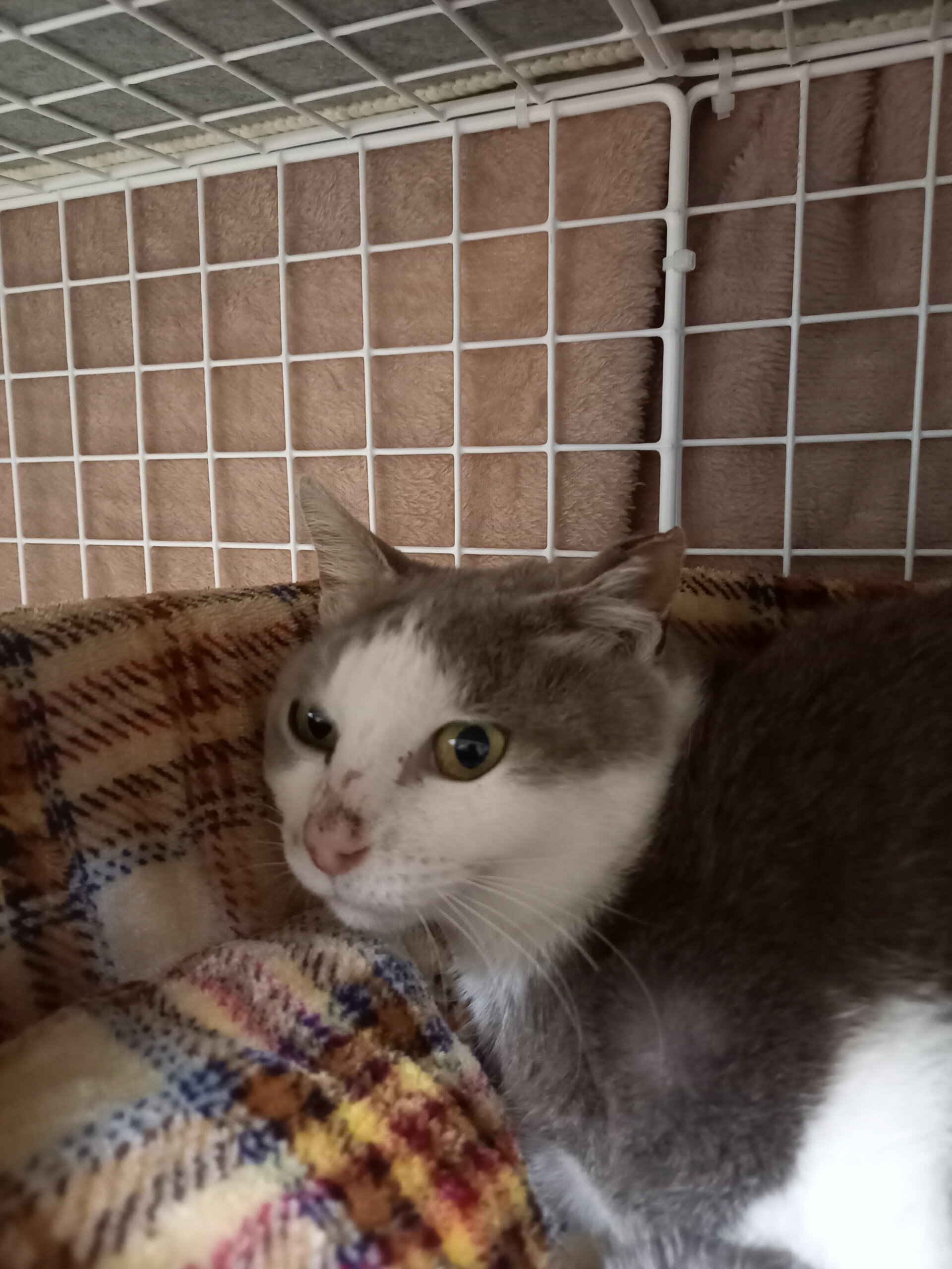 TNR(リリース)予定だったのですが、依頼者が急変し「毎日ご飯やれない」と言い出してしまい…ご飯をもらえない場所へリリース出来ないと思い寒波がくる前(1月20日)に保護。お腹が空いて2匹一緒に捕獲器に入ってしまうほど仲良し親子。