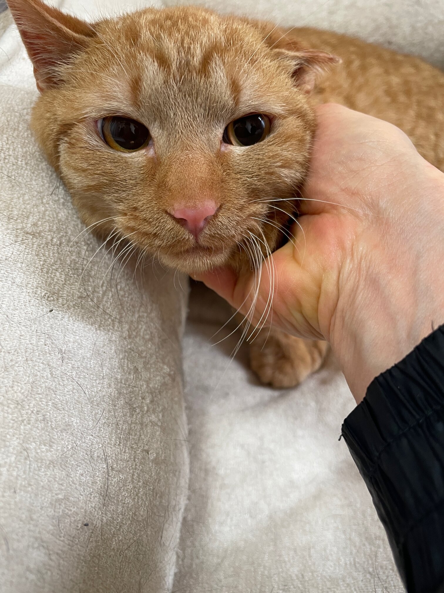 性格はまだ多少おびえたところもありますが、撫でてあげると気持ちよさそうにしています