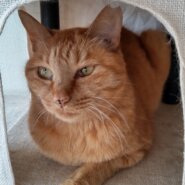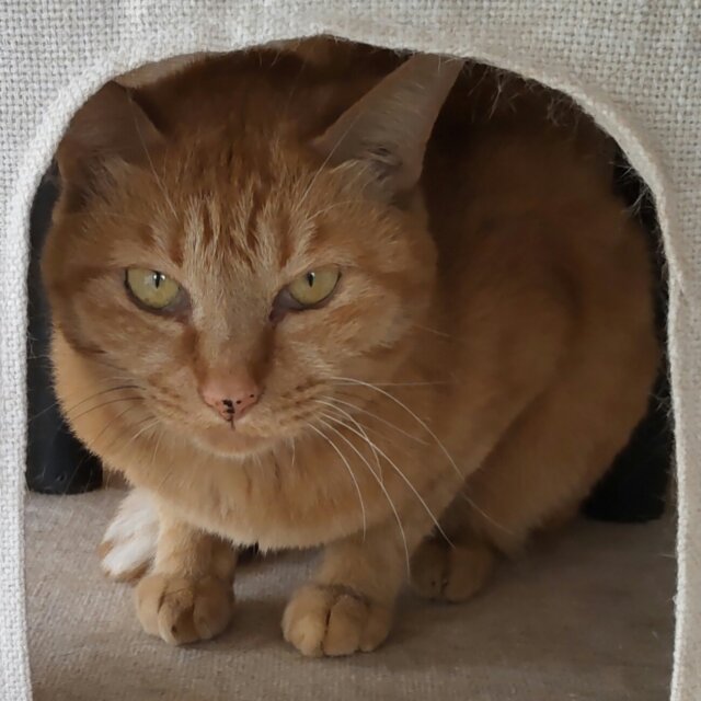 保護後、最初は警戒してハウスに隠れていましたが、数日のうちに触らせてくれるようになりました。