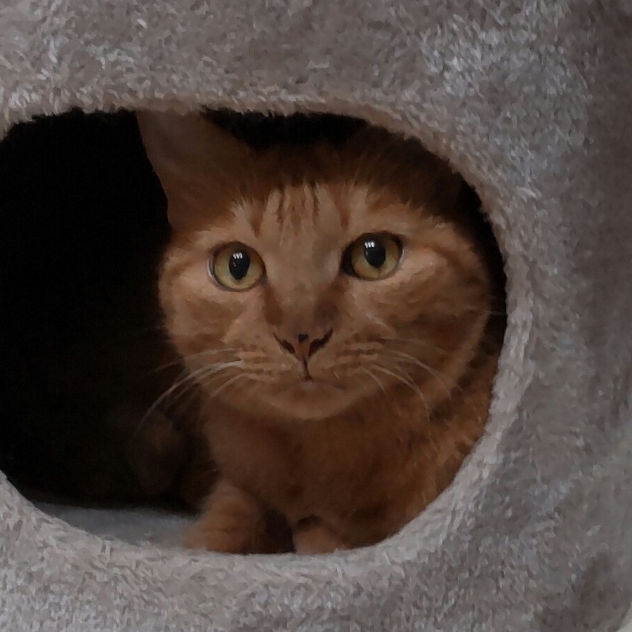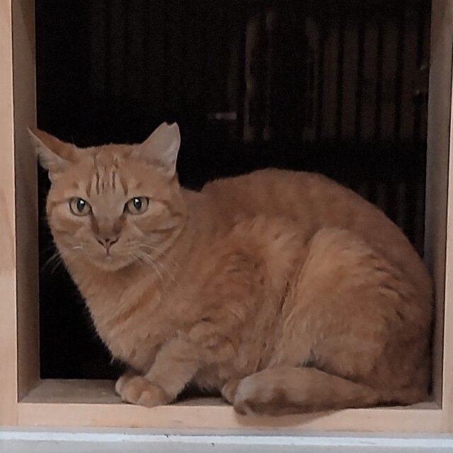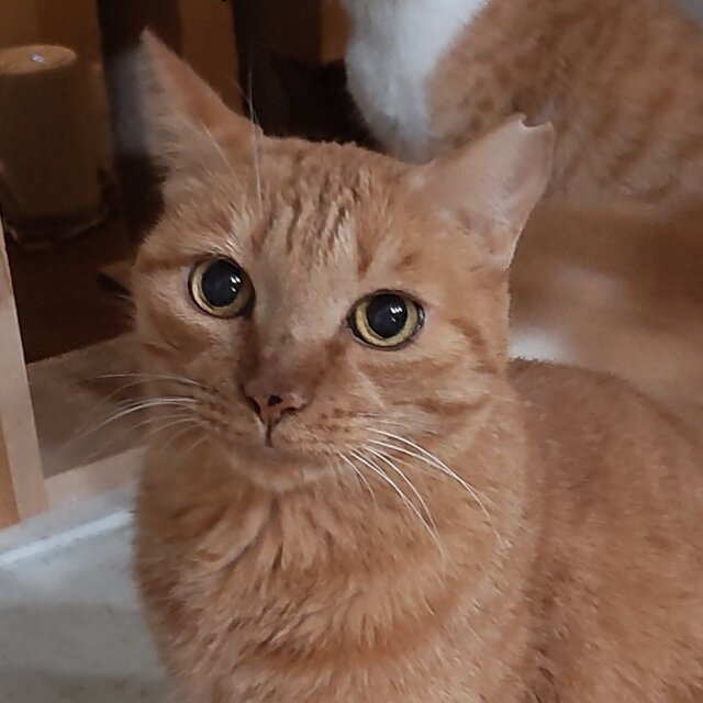 元の飼い主から10歳と聞いていますが、とてもかわいらしい見た目と、高いところにもピョンピョン上る体力もあり、健康そのものなので、もっともっと若く見えます。