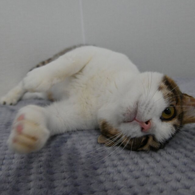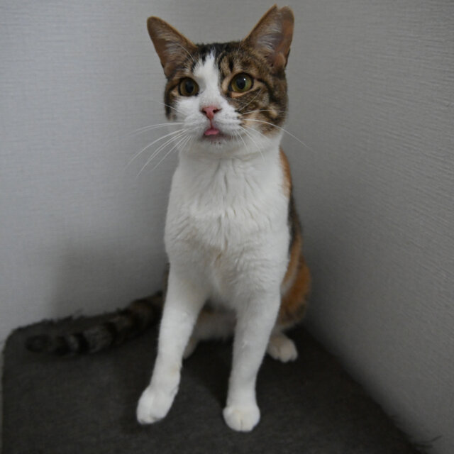 以前は人慣れがまだまだで、表情が固いことが多かったのですが、今ではナデナデが大好きな子に大成長!
