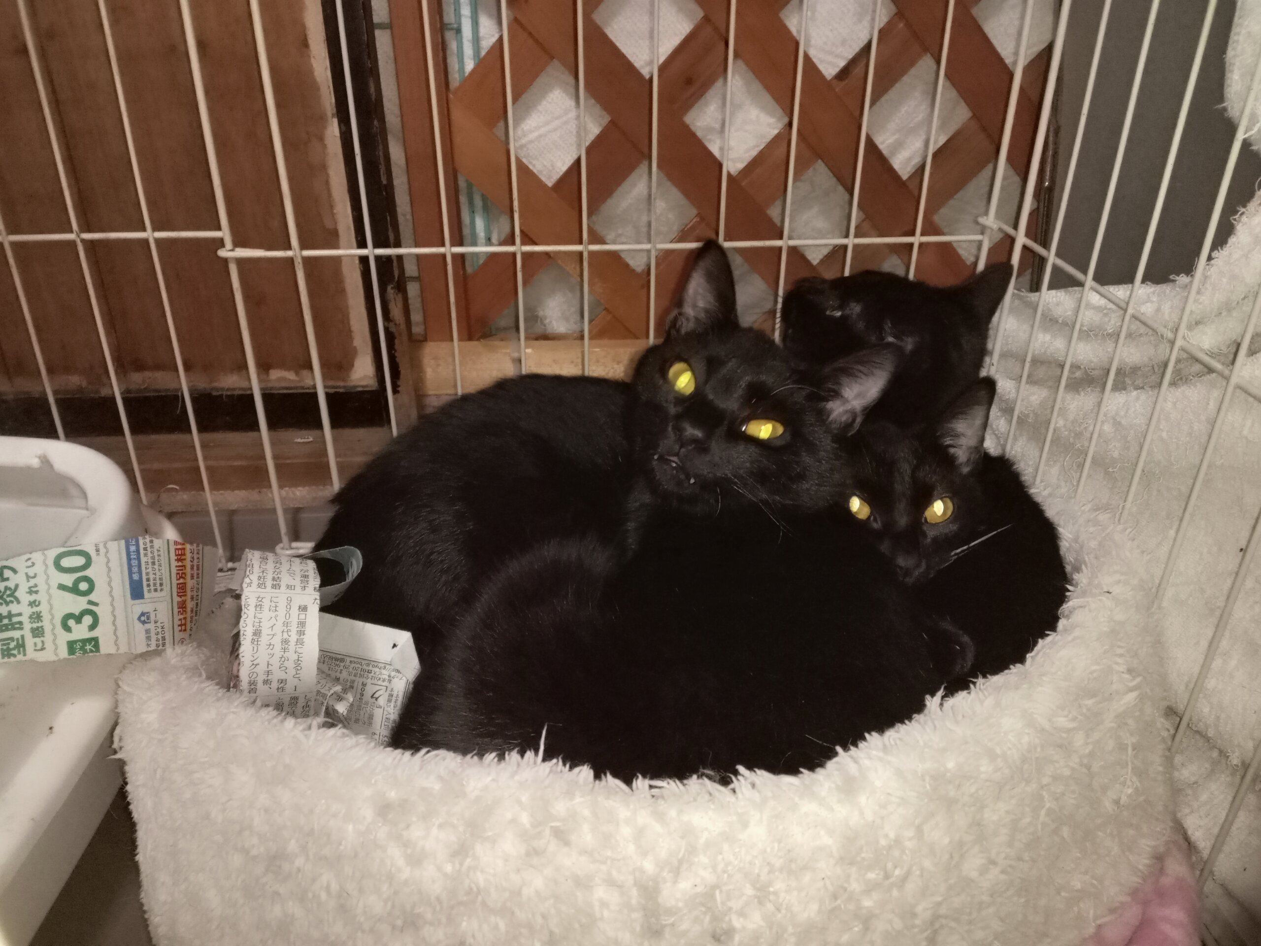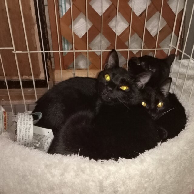 真っ黒の仲良し3きょうだい、男の子1匹です。