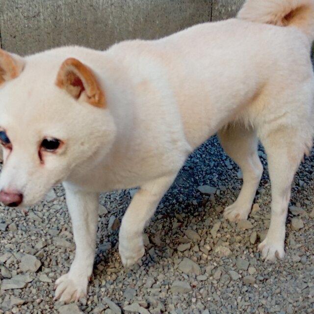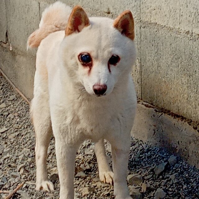 ほぼ目が見えていません。先天的なものではなく、犬同士の喧嘩によるものだそうです。