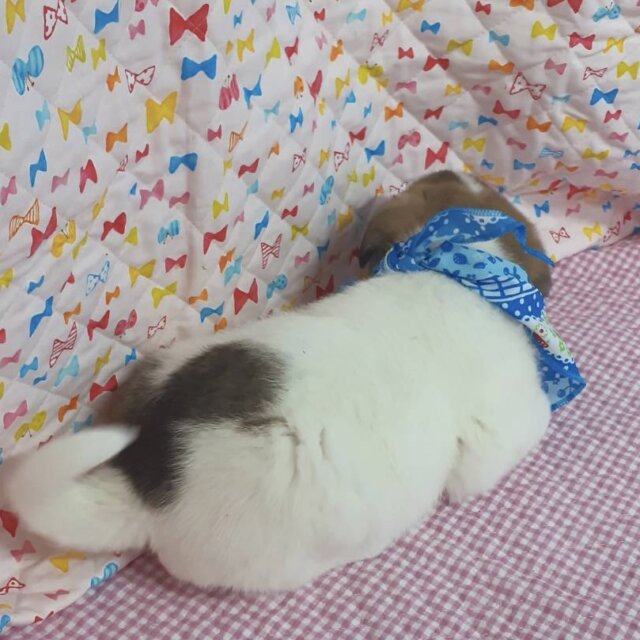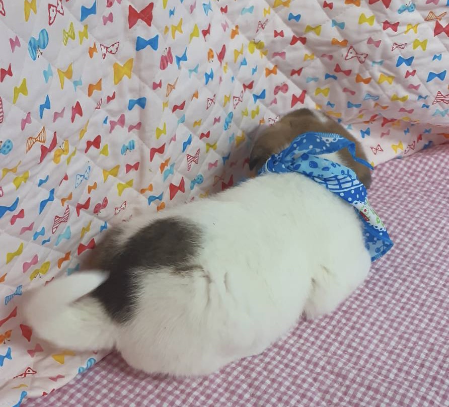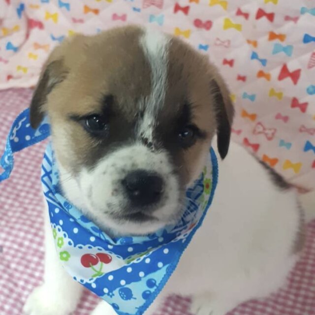 保健所から保護時、鼻筋に傷があり、腫れて見えたので獣医さんを受診したところ、額部分の一部に骨がないことがわかりました。後天的な怪我のようです。これからどのような影響があるかは成長してみないとわからないとのことなので、成長段階で治療が必要となる可能性もあります。