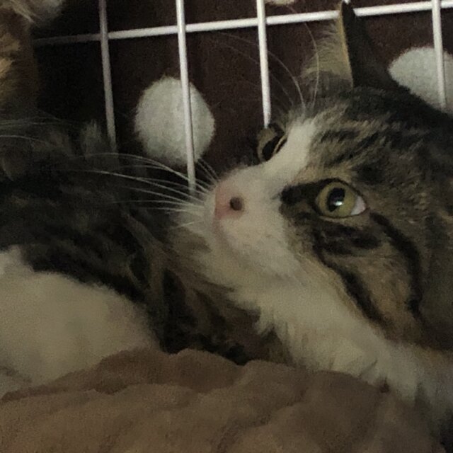 キジシロのロン毛のしょう君は、食欲旺盛でおっとりしてます。綺麗な毛並みです。