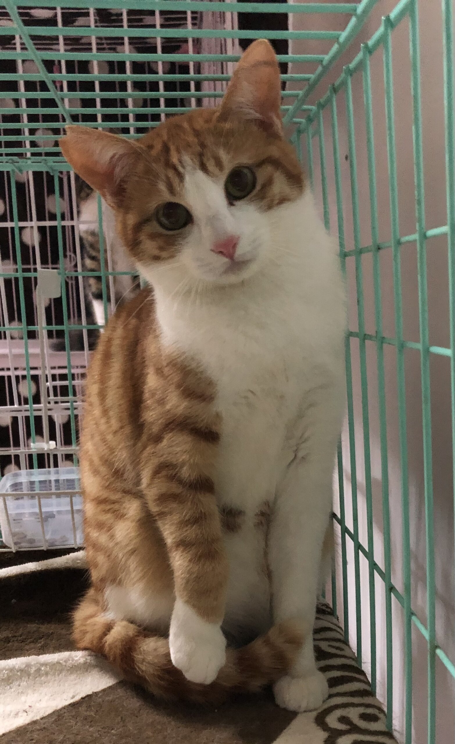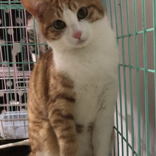 茶白のこちゃくんは、とってもビビリで繊細な男の子です。慣れるまでに少し時間はかかりますが慣れると良く遊んで活発な子です。