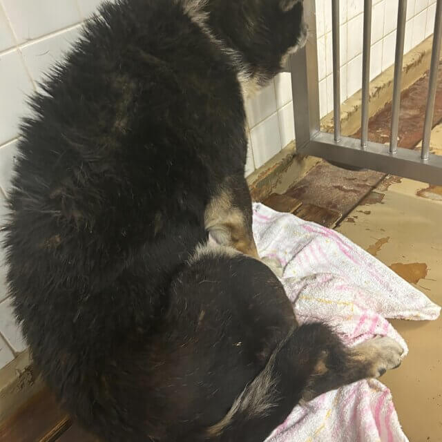 恐怖でフードも食べすじっと固まってます。触っても唸りもなくじっとしてます。