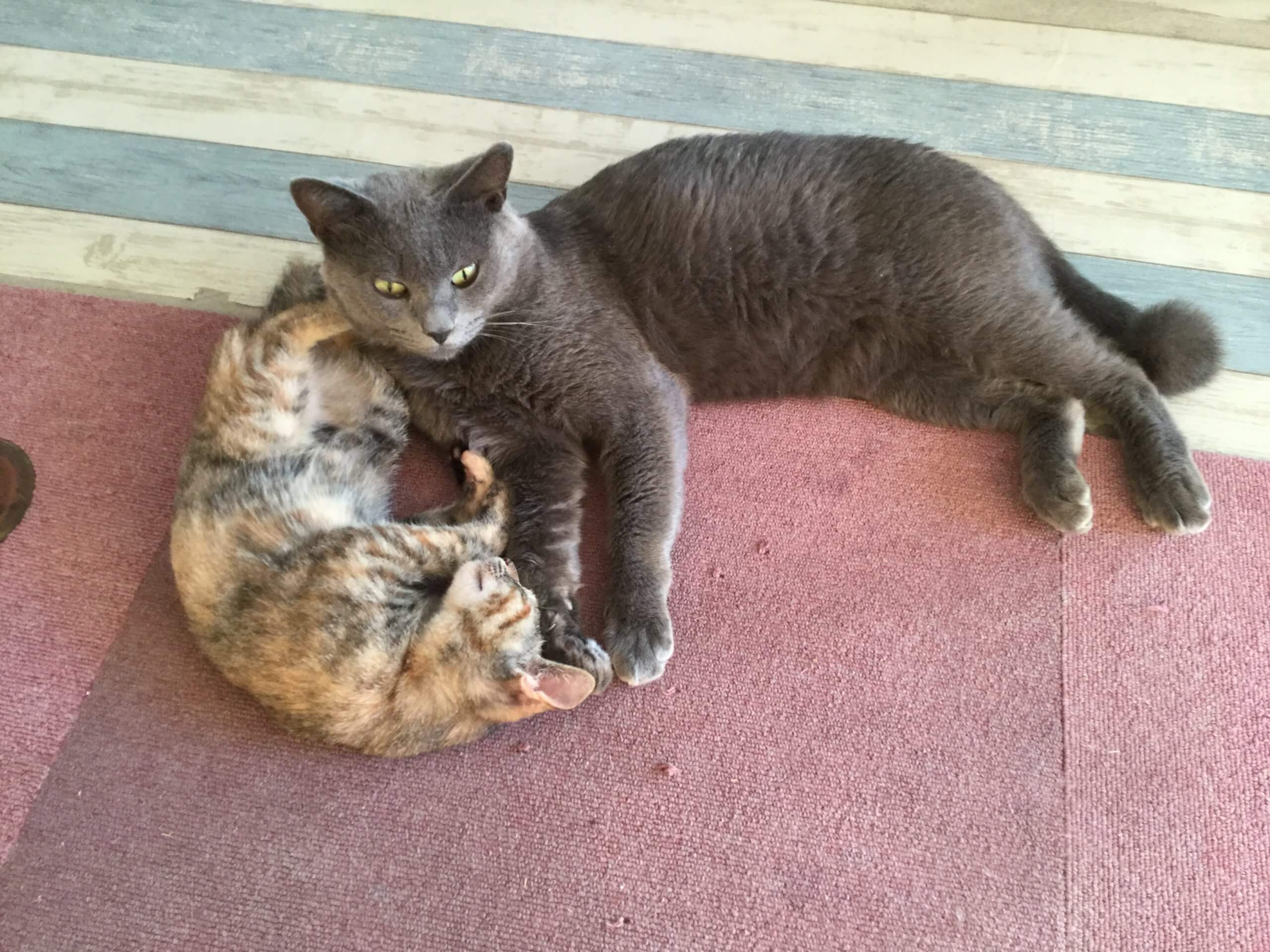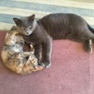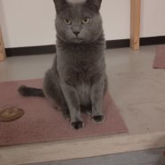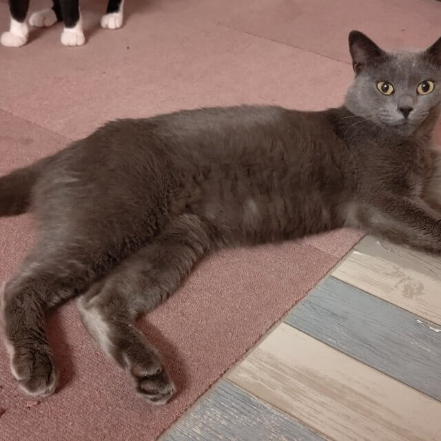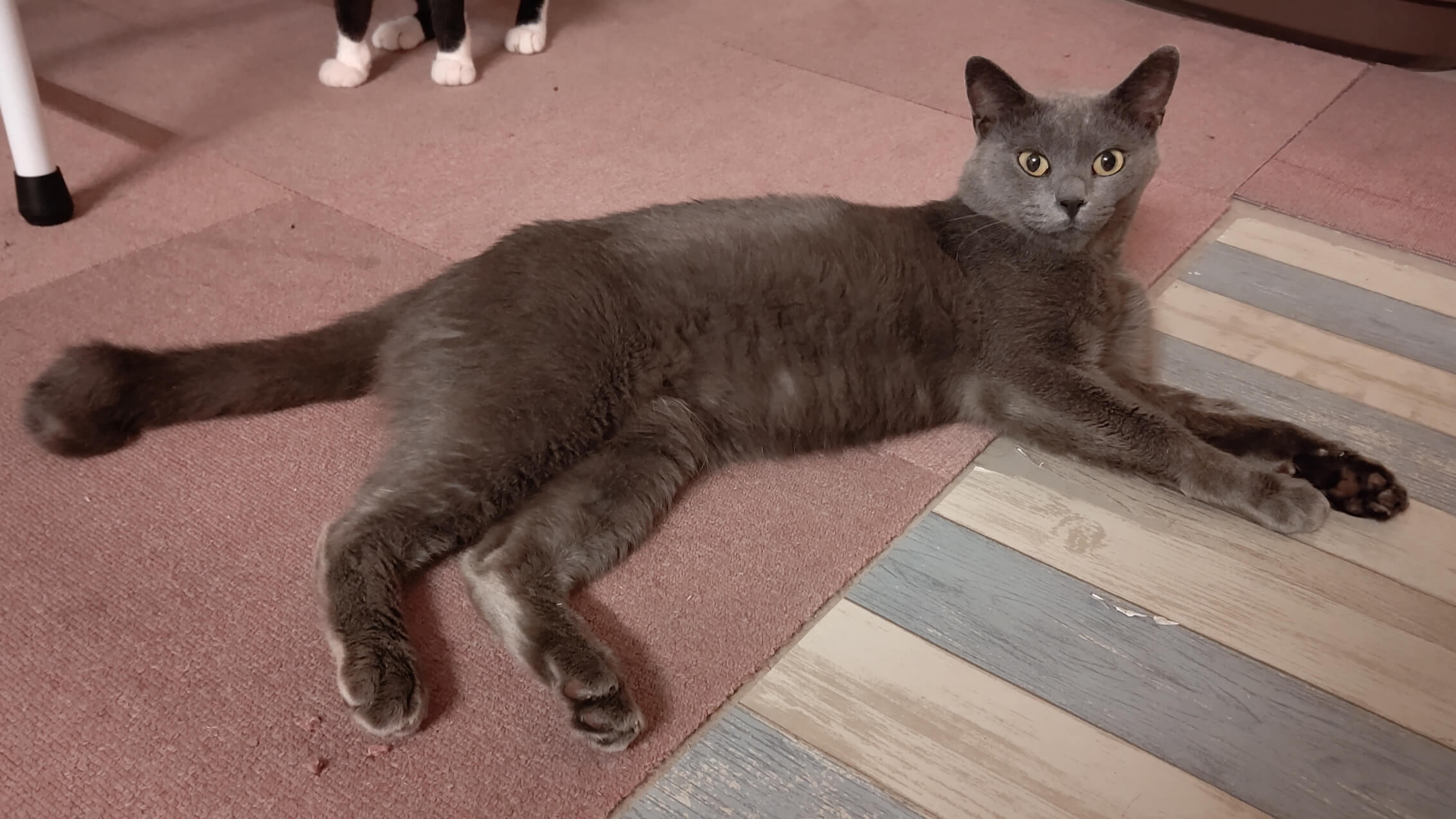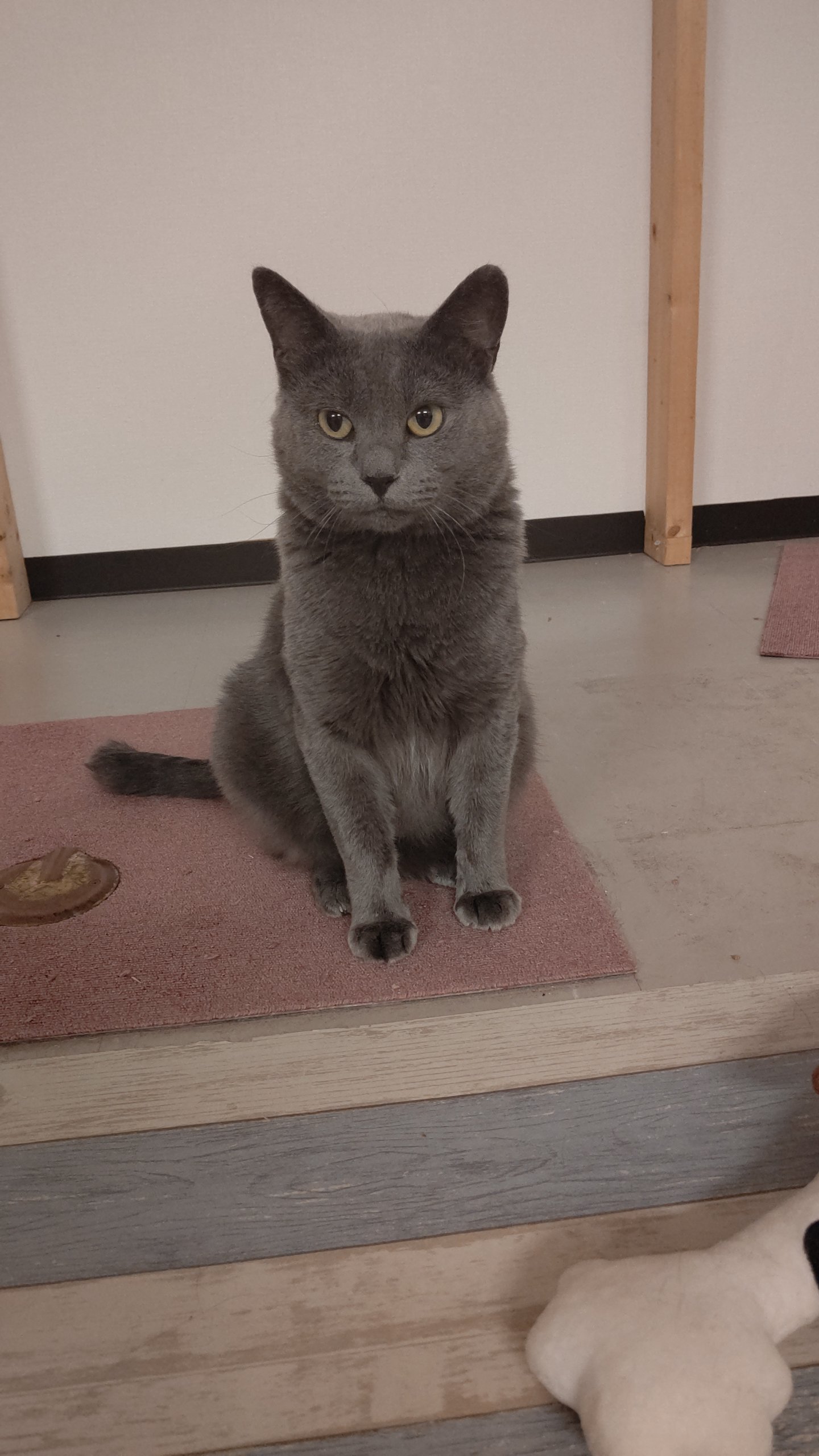 グレーの毛並みが綺麗なロシアン。ロシアンブルーっぽいという事でそのままロシアンという名前です!