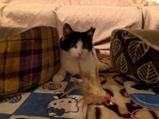 やんちゃな甘えん坊で、ナデナデも抱っこも大好きです。フリースペースでは、一人遊びもしますが、猫じゃらしなどで遊ぶのが好きです。