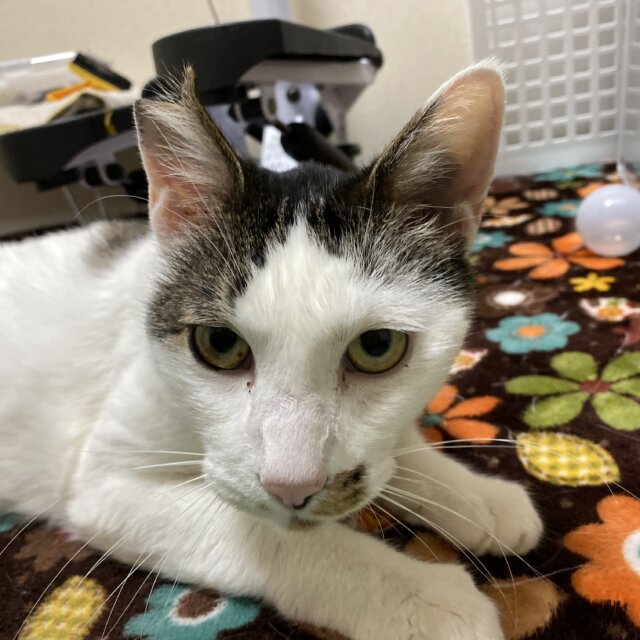 TNR中に出会った地域の人気猫さん。どこかの地域から流れてきて他の地域猫たちとも距離感があった子。あまりに人なつきがよすぎてダレにでもついて行く風景をみて地域の方と話合いなんとかずっとのお家を見つけてあげたいと思い保護しました。