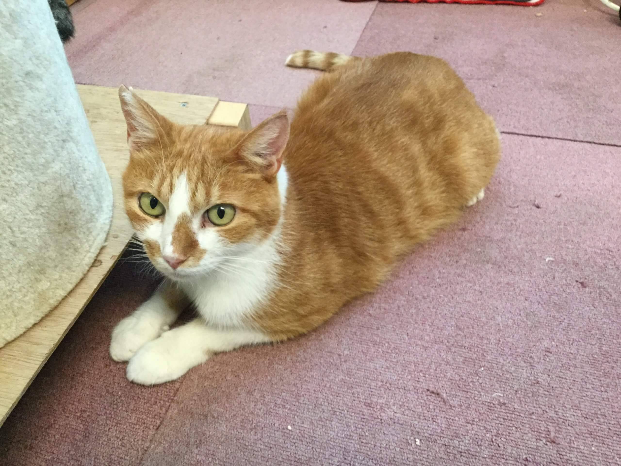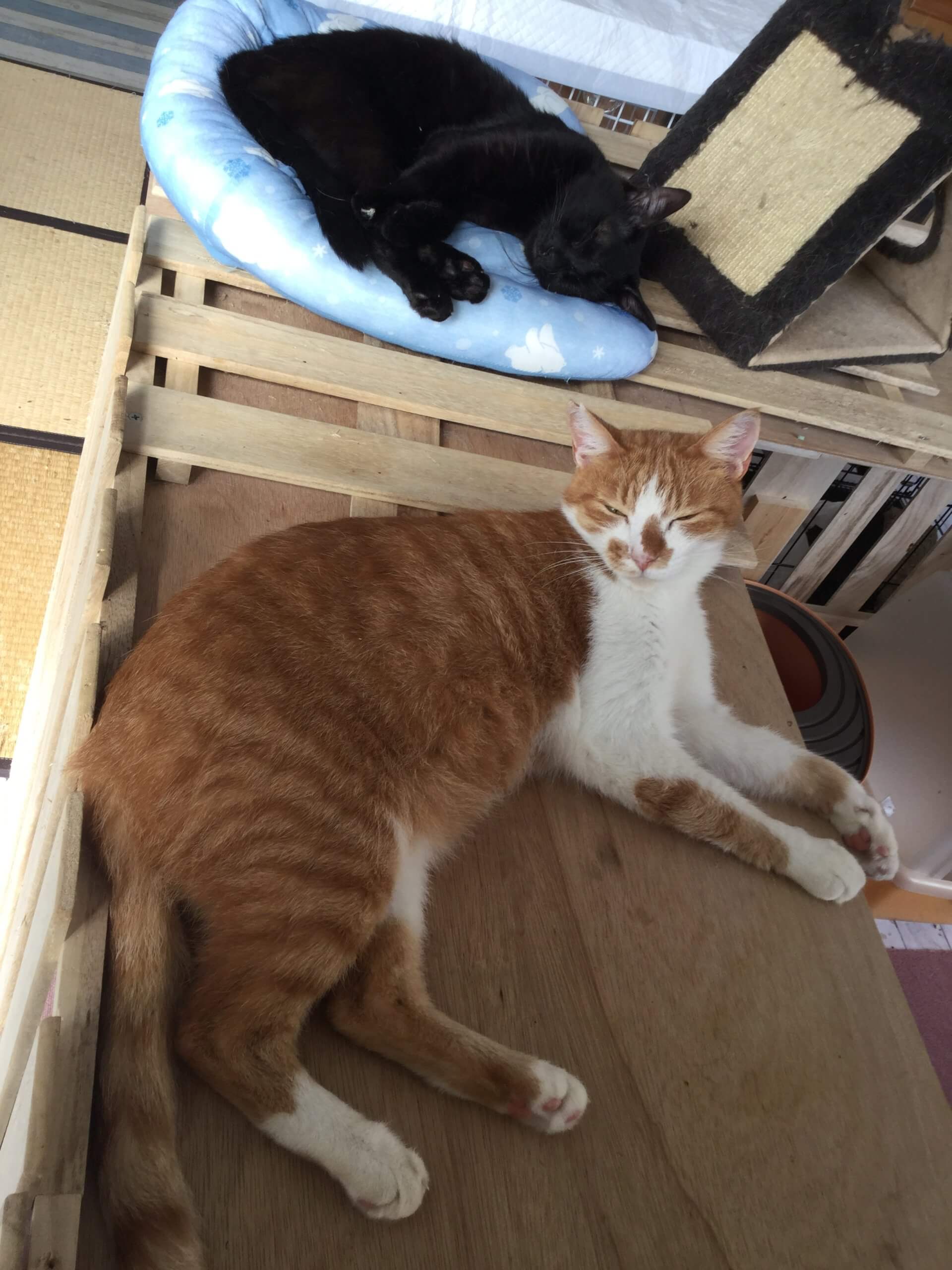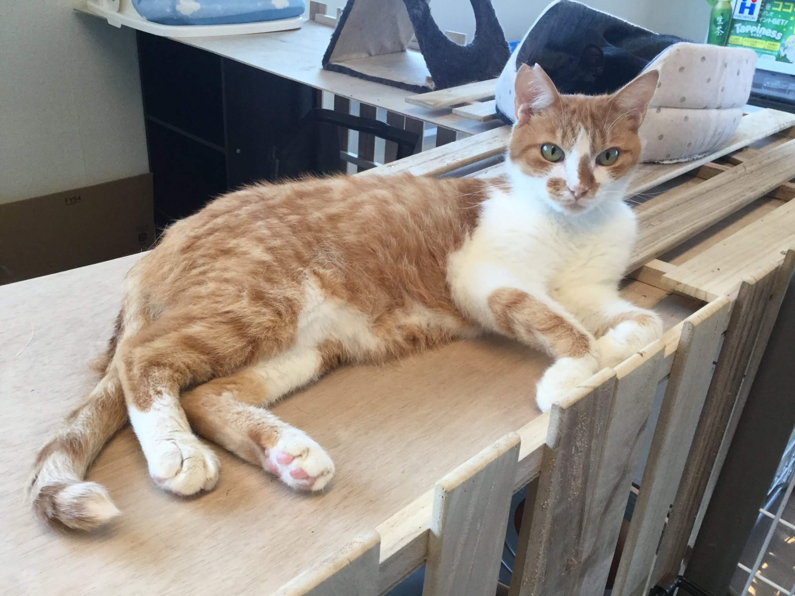 ゴミを漁っていた野良だったようで船橋動物愛護センターに保護されたところ店長が引き取りました。その兼ね合いでうにゃにゃのマイクロチップは店長の名義で登録されています。里親様になっていただいた際にはマイクロチップの名義変更をお願いいたします。