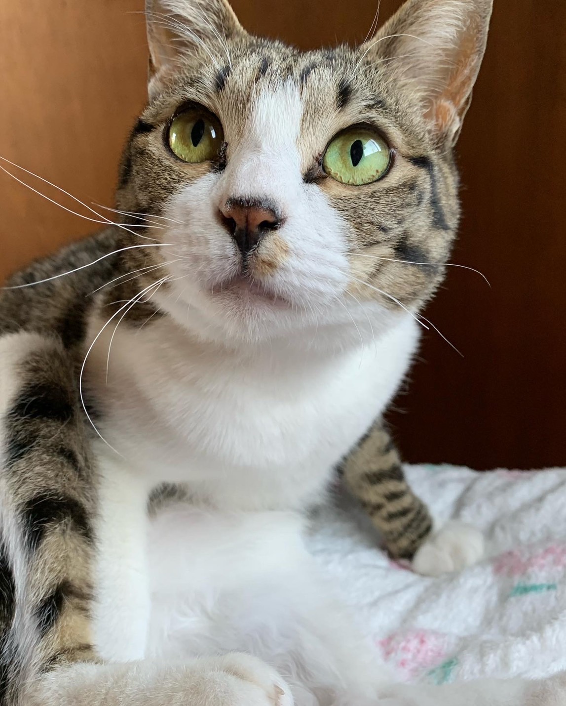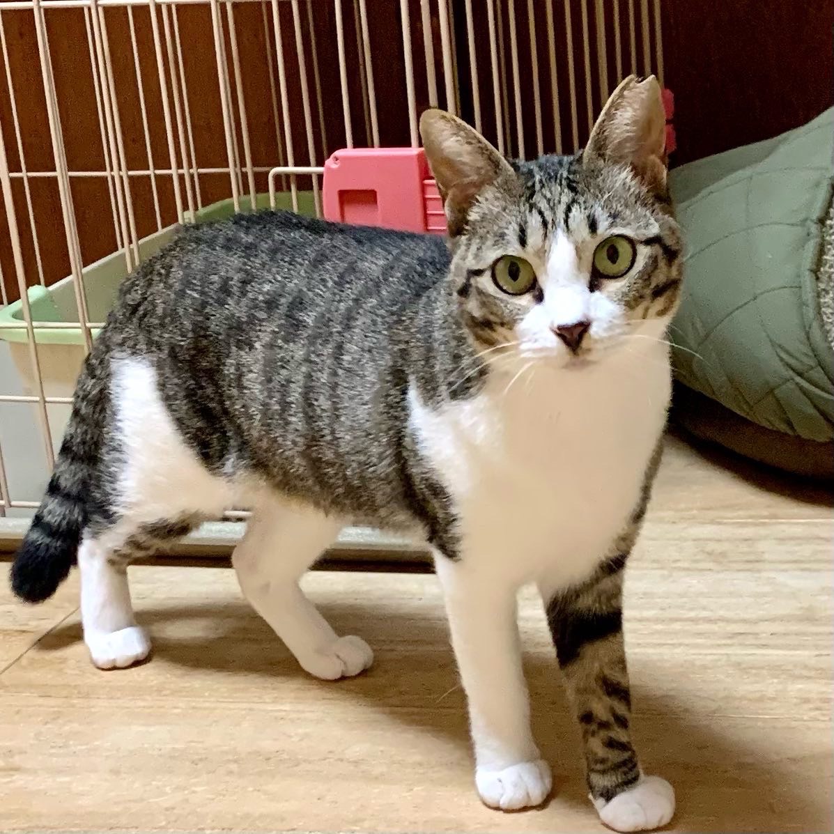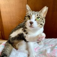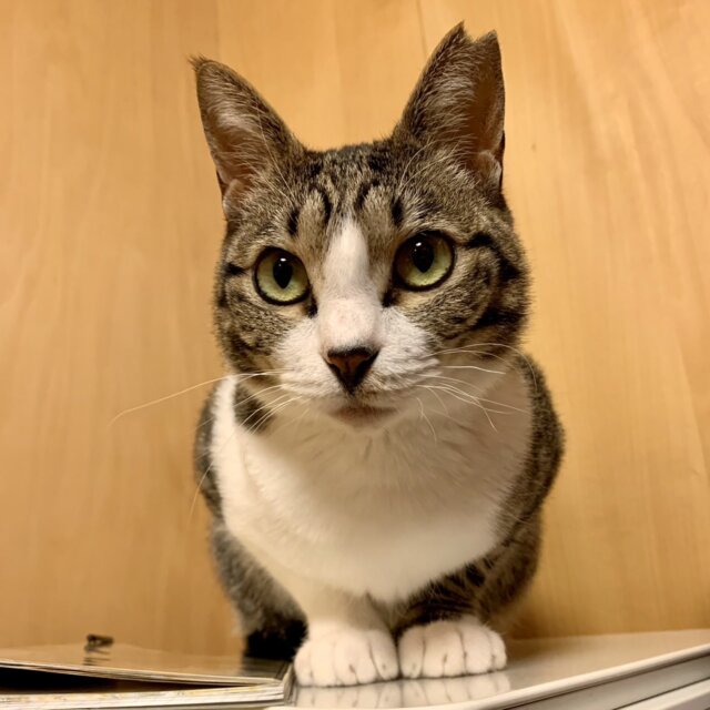 3キロ程の小さなキジシロネコさんで、目はピスタチオグリーンです。