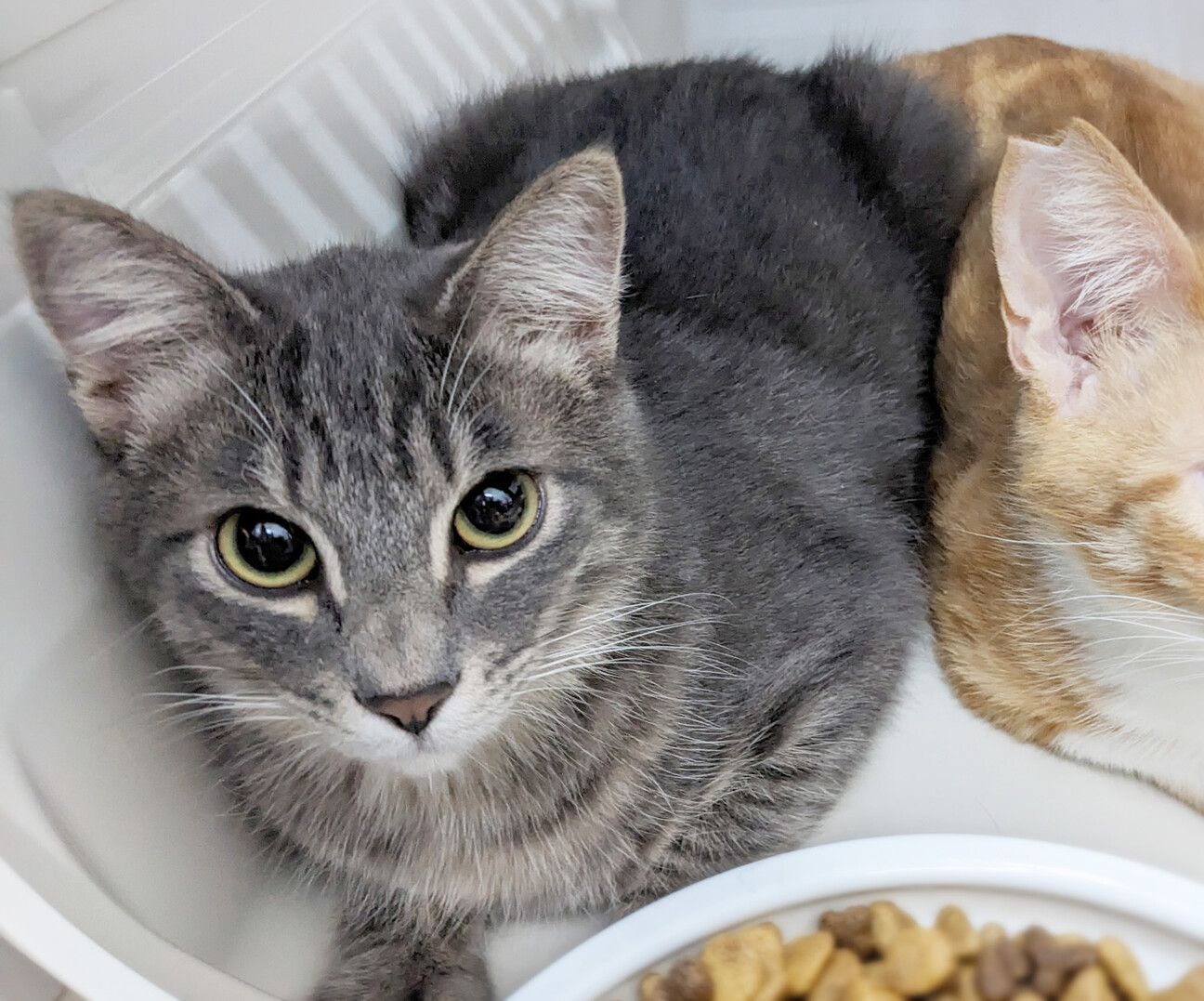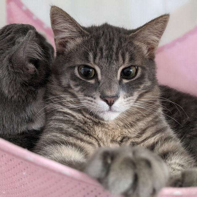 スキンシップ不足のため、「甘えん坊予備軍」です。お膝抱っこは怖がりますが、他の保護猫たちと一緒にすり寄ってきたり、お腹が空くと、可愛い声でご飯アピールをしたり、撫でるとゴロゴロと喉を鳴らす事もあります。