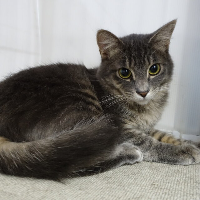2022.7.2頃に生まれた、少し毛足の長い短毛種で、ふわふわした毛並みの触り心地のよい子です。