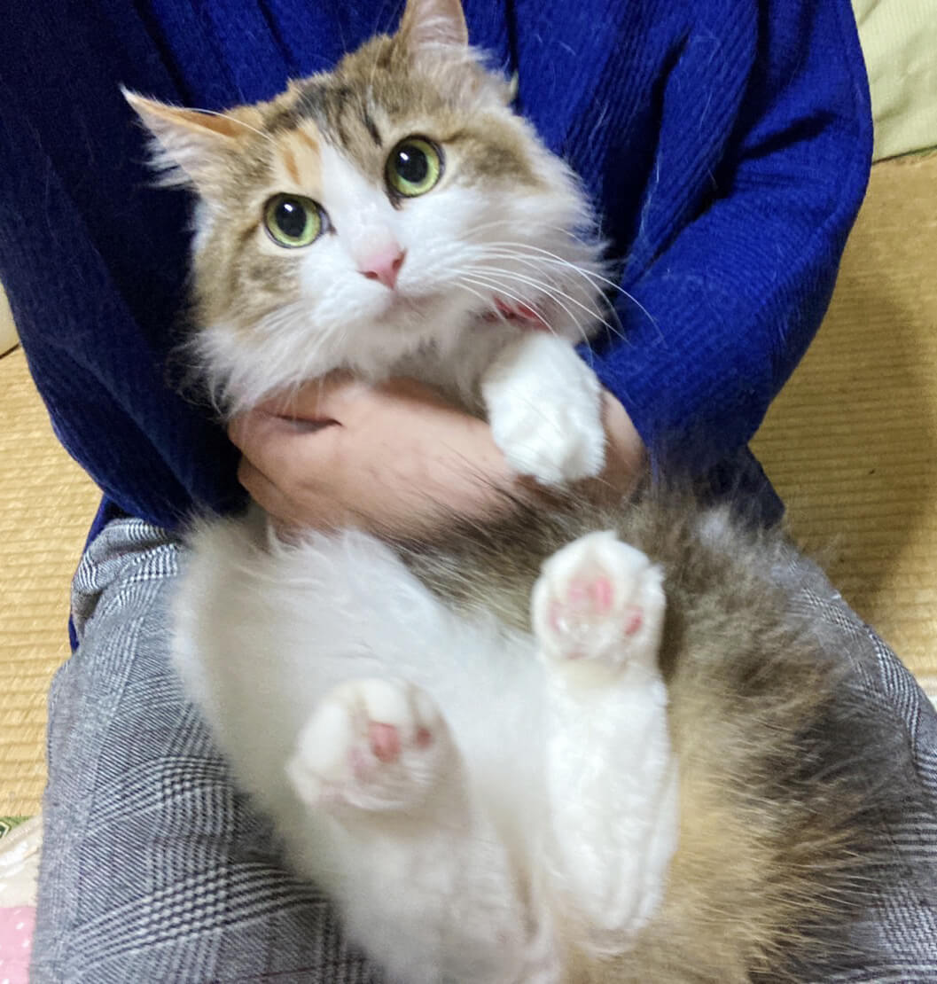 人見知りなところがありますが、おばあさんに可愛がられていたため、なでたり抱っこもできます。