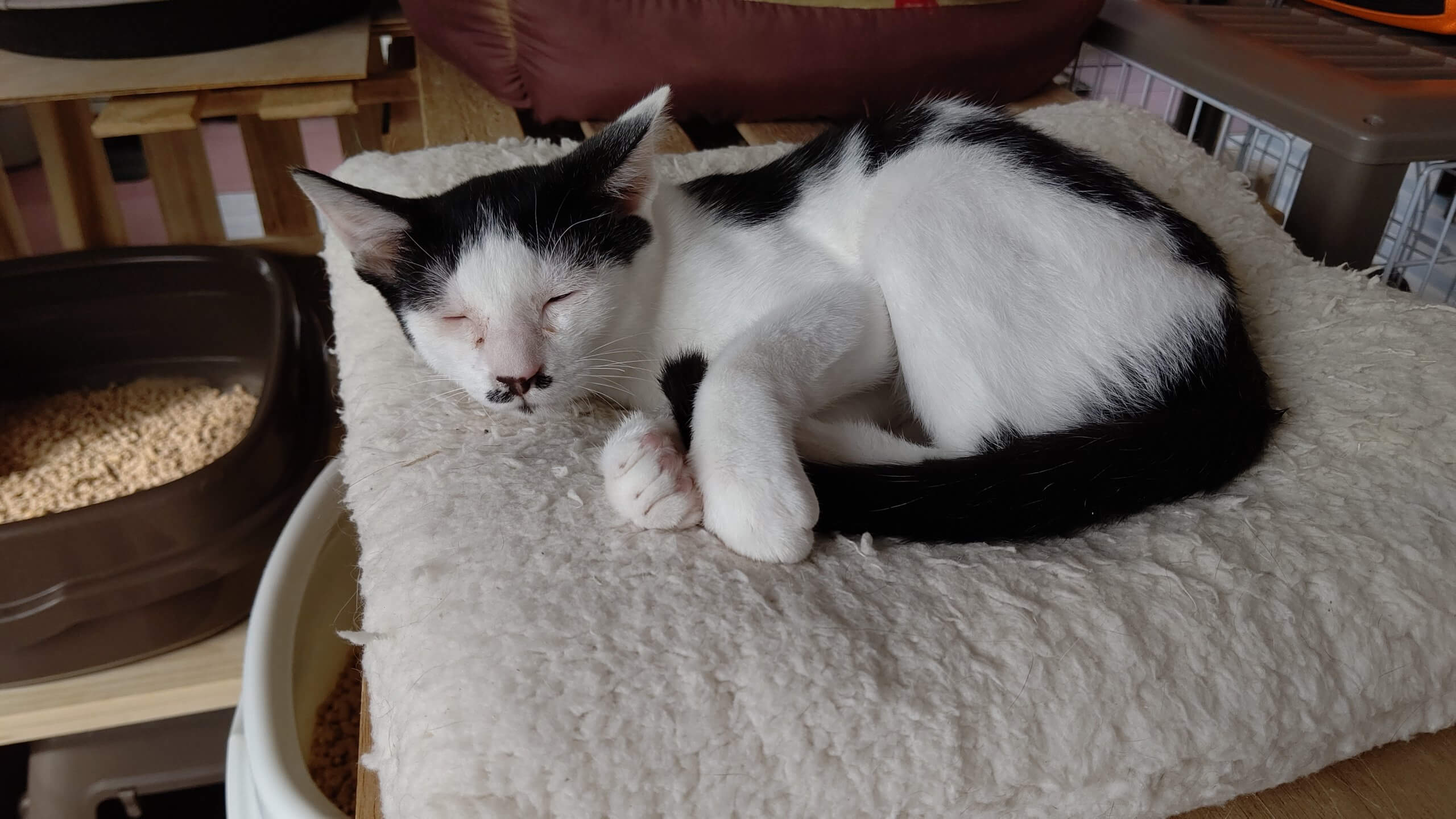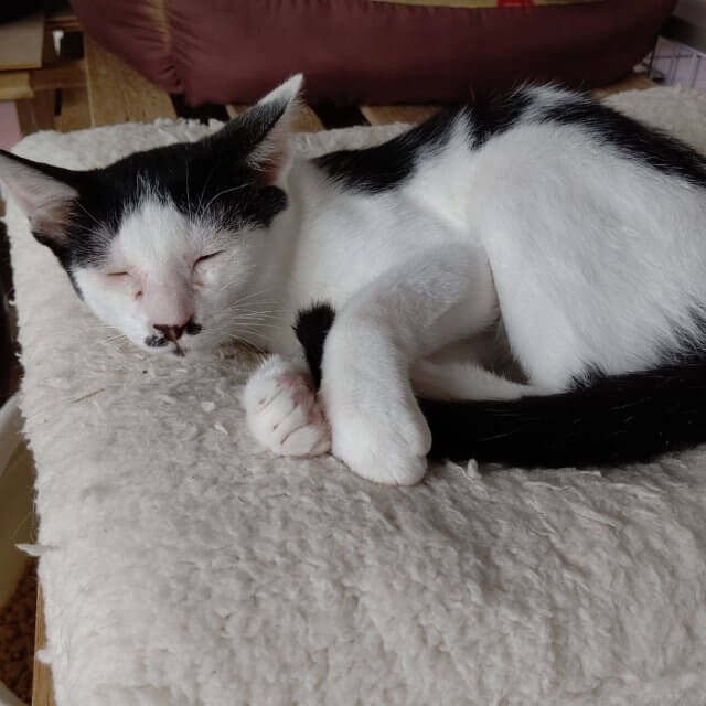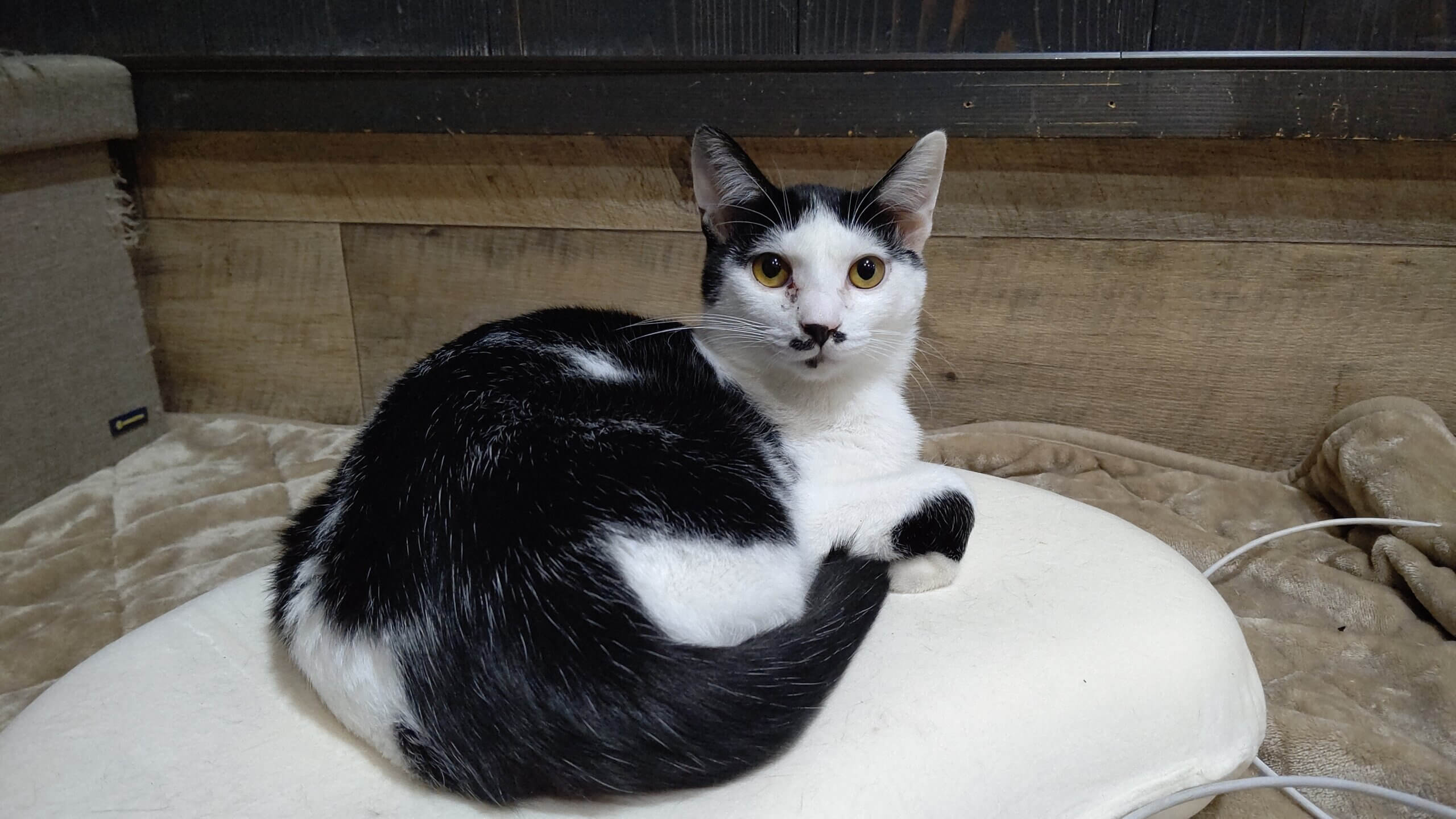 ハチワレでちょび髭模様のあるきずなくん。