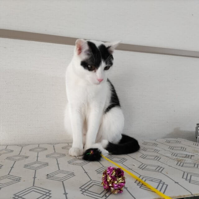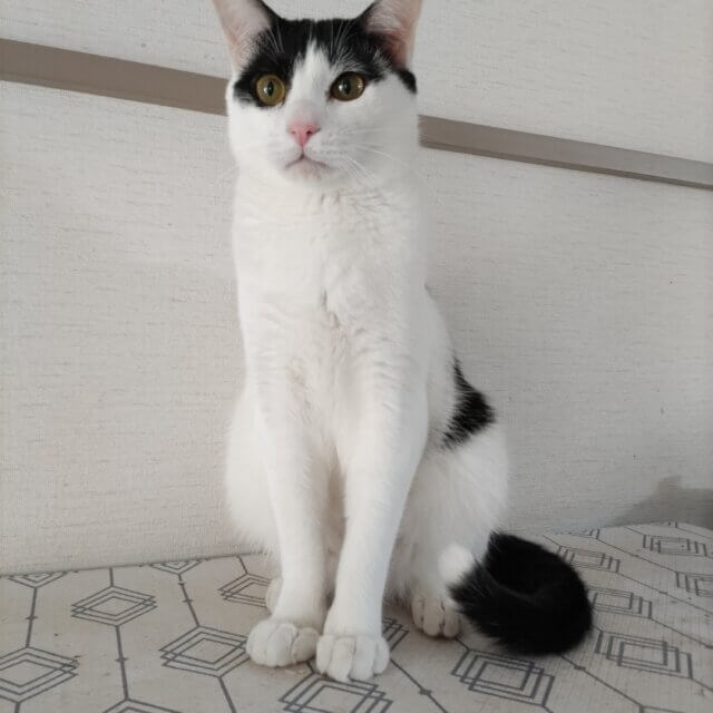 【毛色・柄】 白黒 真っ直ぐなキャンドルテール!
