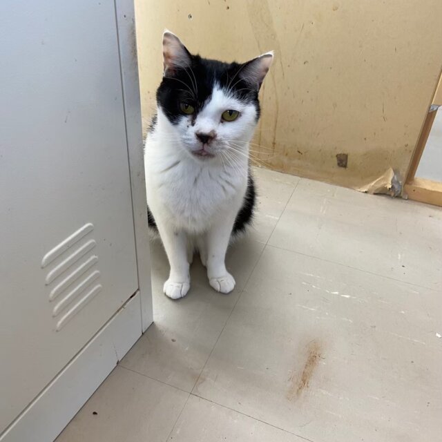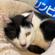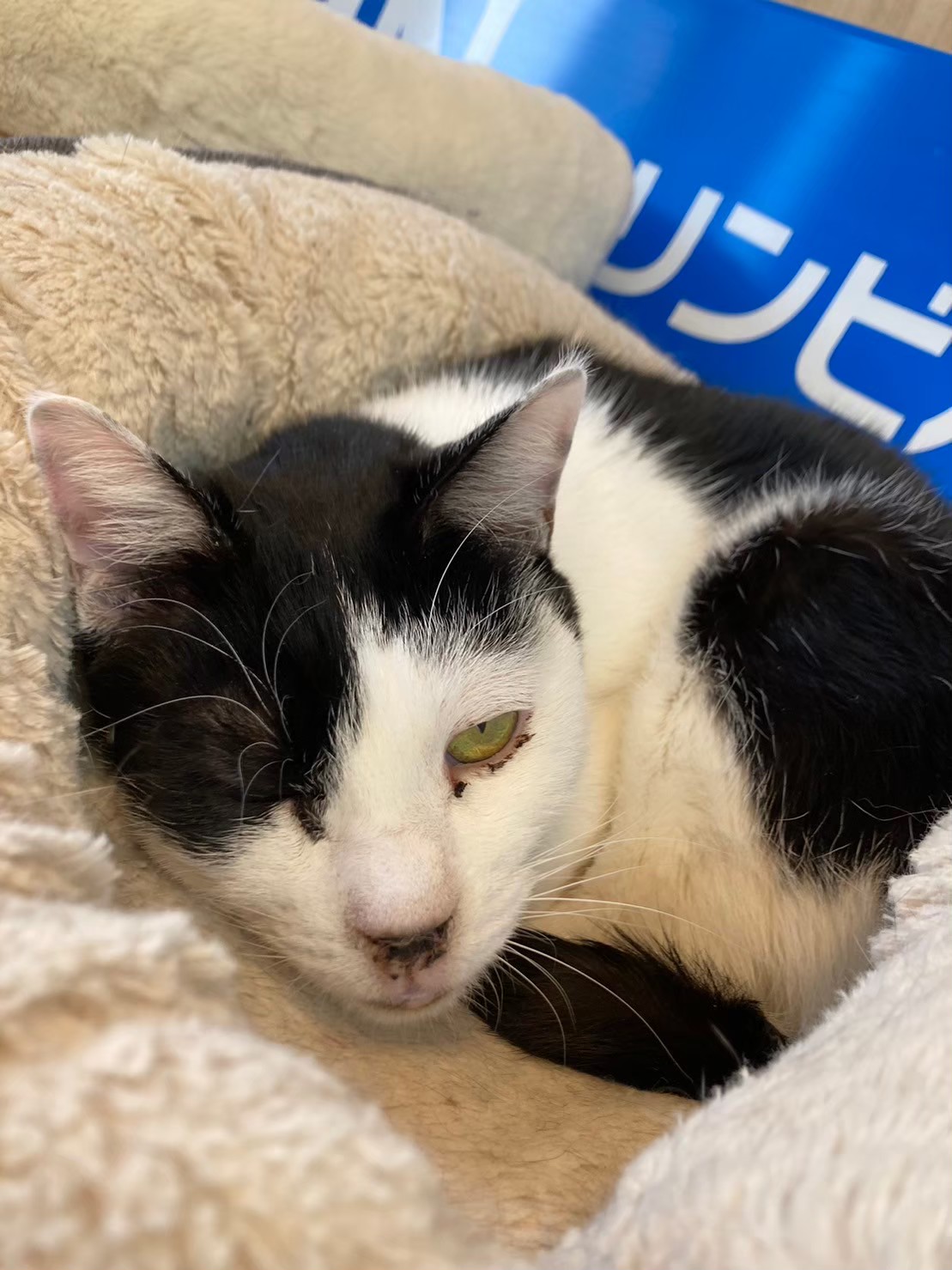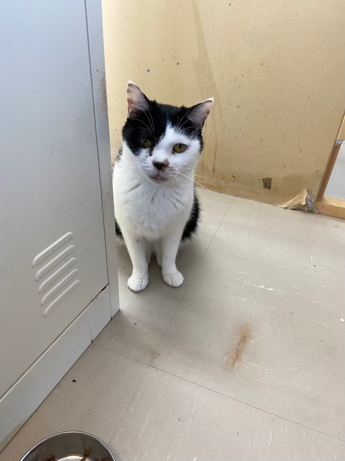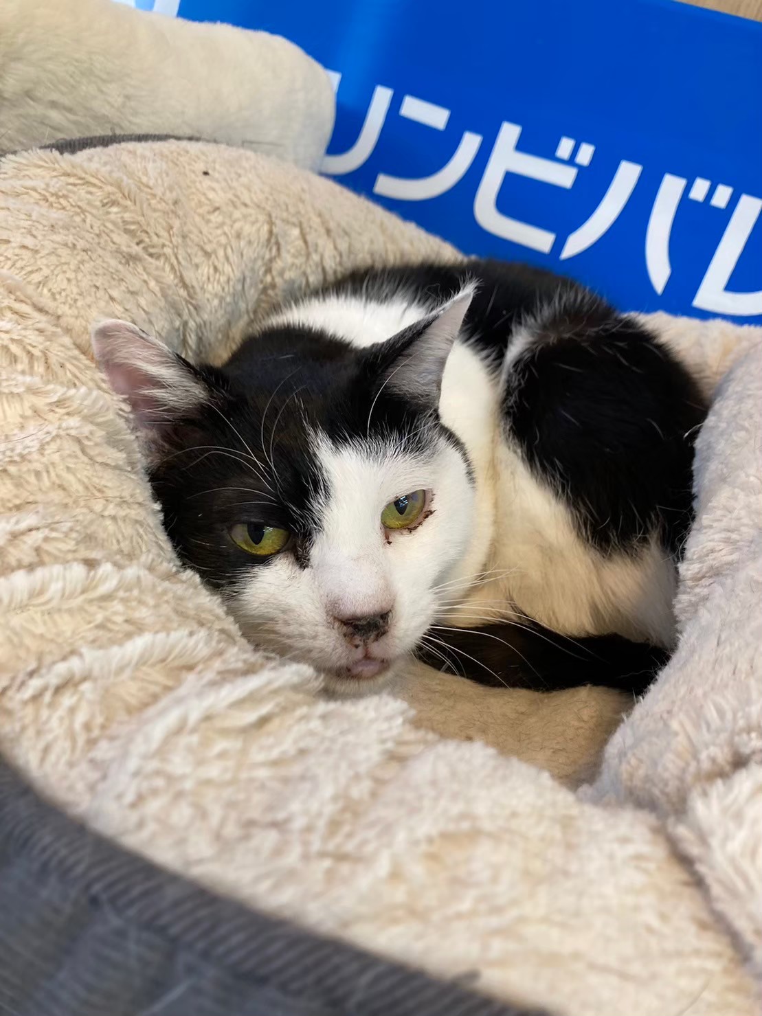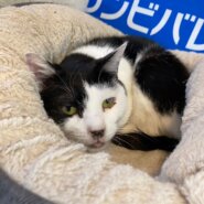 ハチワレ模様がアシンメトリーになってるえんじちゃん。