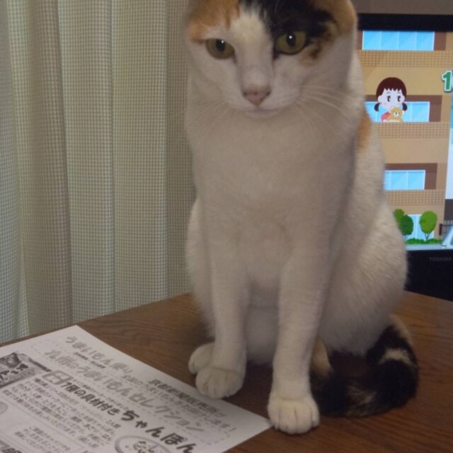 新聞の上に乗ってきたり、「ミャー」と可愛い声で話しかけてきます。