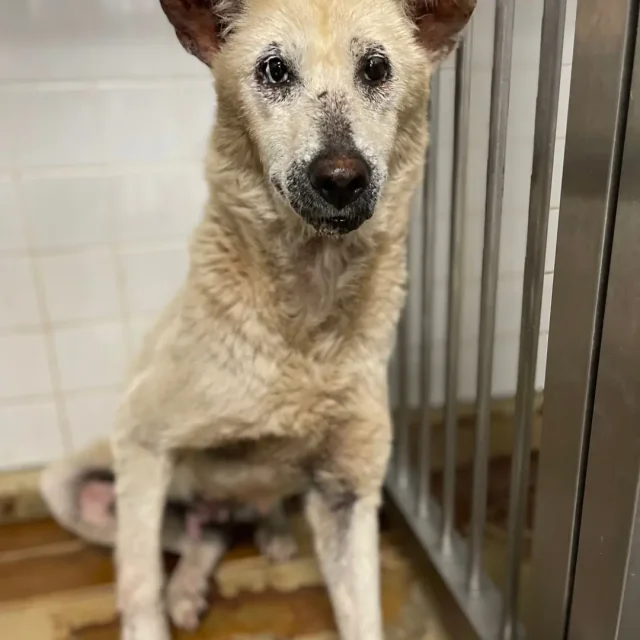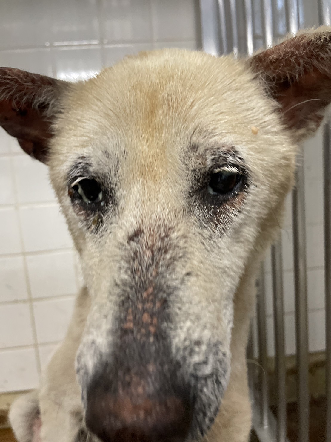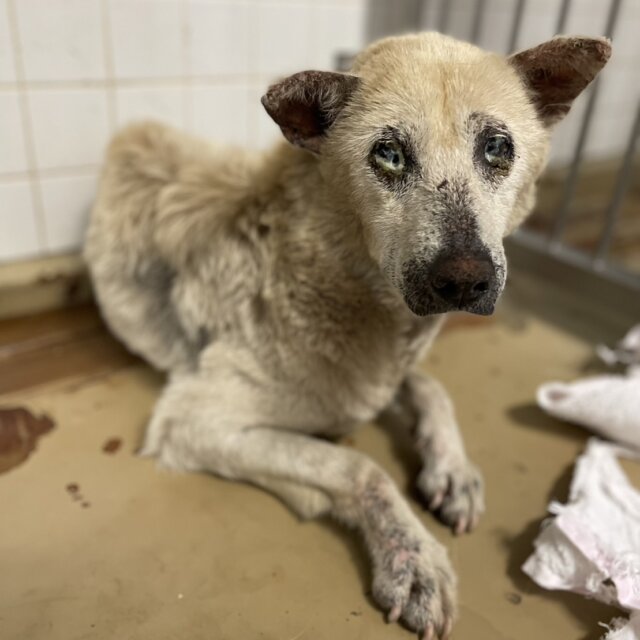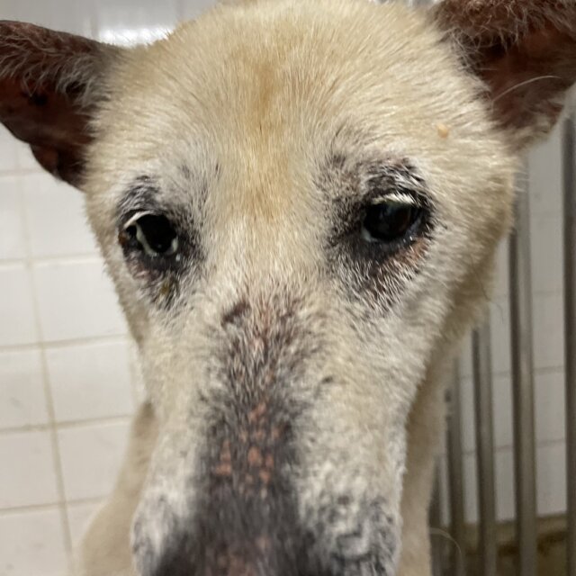 センターでこの子に会ったときは公示通りで、皮膚病凄い事と、眼脂で目が開けれない状態でした