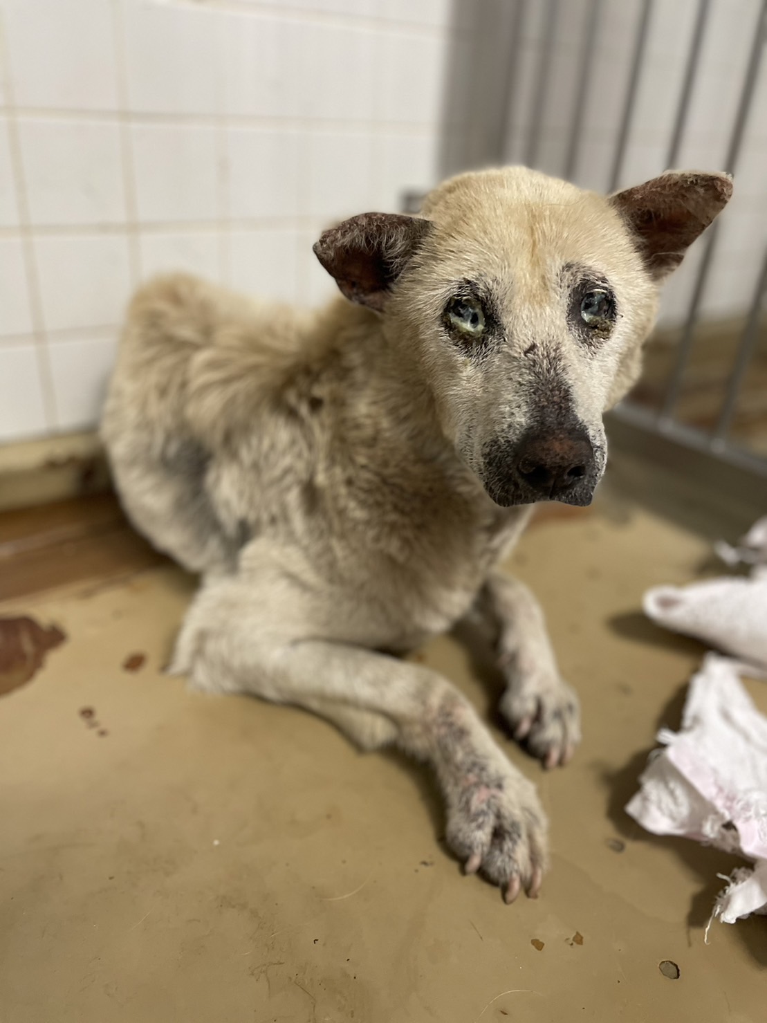センターでは目さえ拭いてもらえず可哀想な状態でした