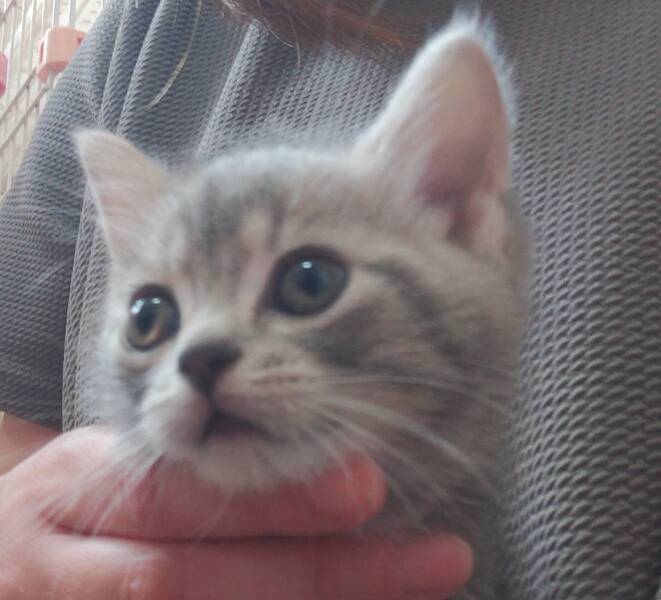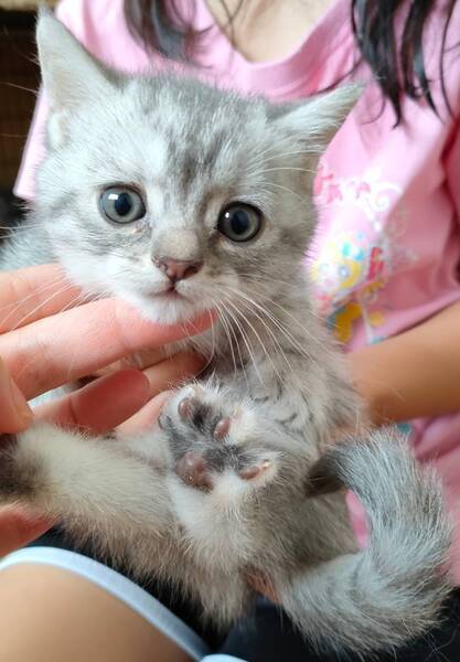 立ち耳なので見た目はシルバー系のアメリカンショートヘアみたいです。