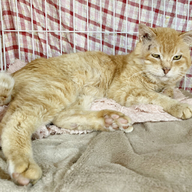 外で餌やりさんにご飯をもらっていました。手術のために保護しましたが人馴れしていて大人しい性格のため、飼い猫として里親様に迎えて頂けたらと思い募集させて頂きました。