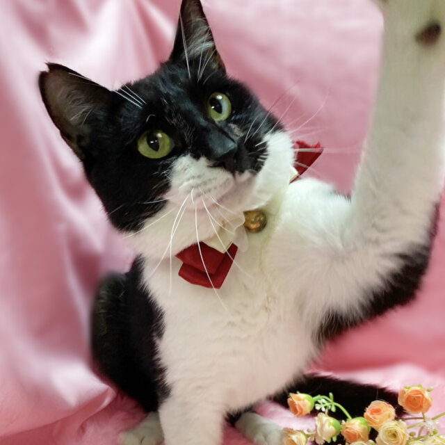 オスの成猫とは思えない、「キュ~ン」という愛らしい声で鳴きます。(動画あり)
